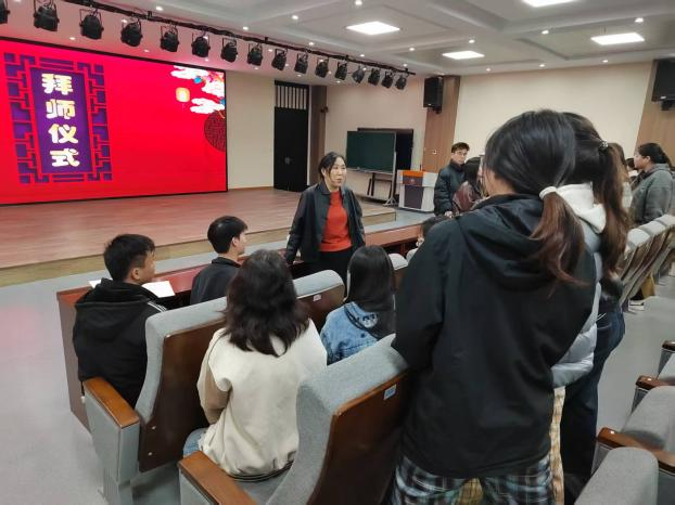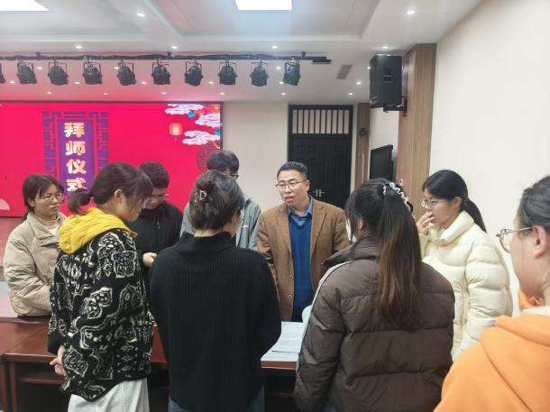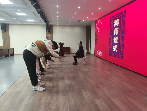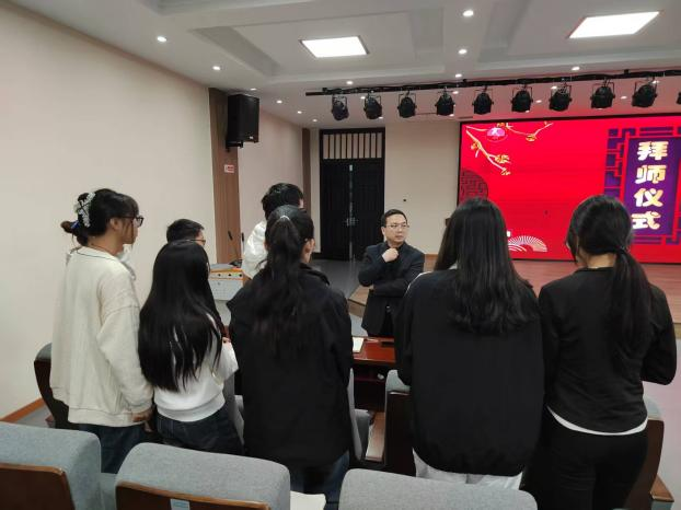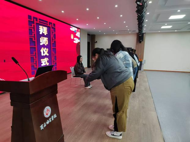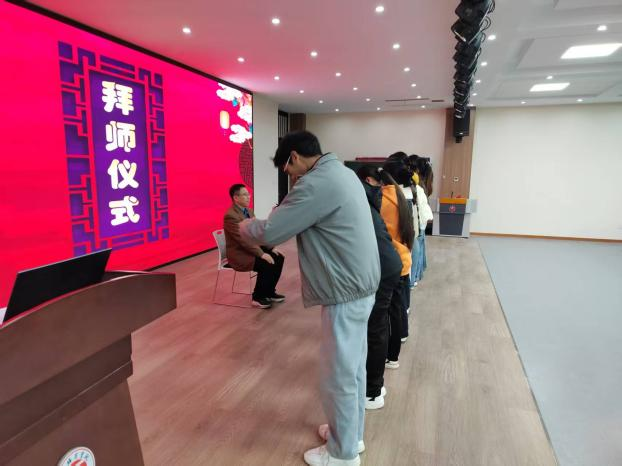 活动核心环节为庄重的拜师仪式。“一拜师范,以身作则,教我务实严谨;二拜师尊,悉心教化,教我明理求真;三拜师恩,倾尽所学,授我一技之长。”四个小组的坊员在组长带领下依次上台,向指导老师鞠躬致谢并合影留念。启动仪式至此圆满完成。
