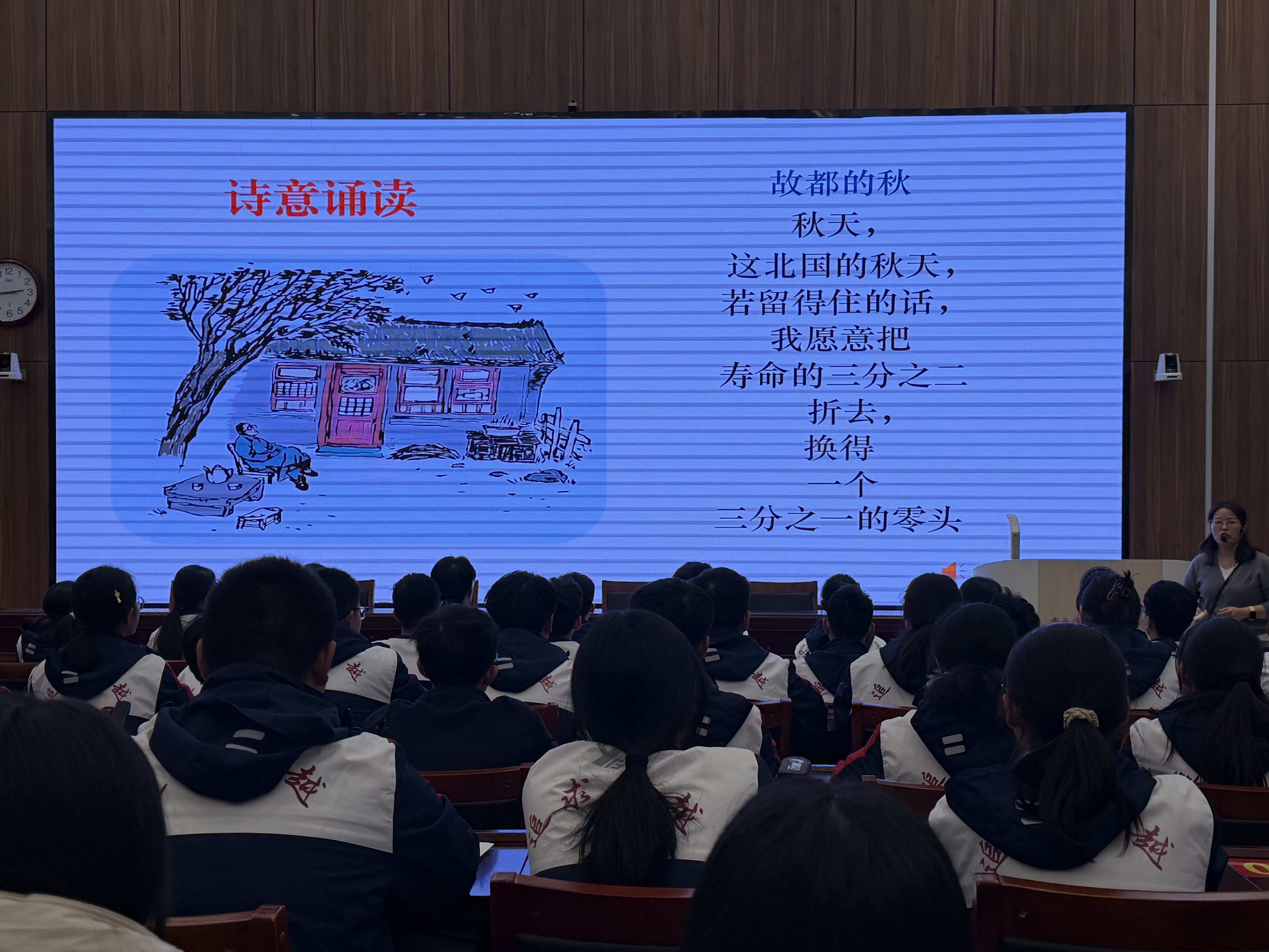 商丘市第一高级中学丁明利老师以《故都的秋》为范本,呈现了一堂兼具审美深度与教学温度的示范课。课堂紧扣“清、静、悲凉”核心意境,构建“品味语言入秋—析选景入秋境—体心境悟审美”的递进式教学脉络。教学中,齐读、诵读、小组讨论等多元互动形式穿插其间,让在场坊员直观领略到优质语文课堂的教学艺术与育人魅力。