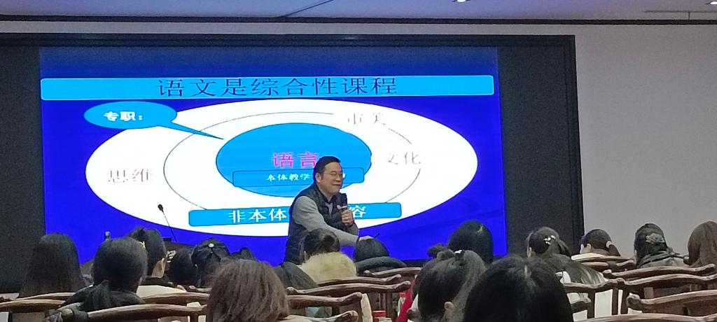宋老师的讲座从自身丰富的教学经验出发,重点围绕三个大问题:教育是什么、语文是什么、阅读教学怎么走,进行接下来宋老师回答了语文是什么的问题,指出语文是综合性课程,说出来的是语言,写出来的是文章,文章依据语言,“语”和“文”是分不开的。语文教学应该包括听话、说话、阅读、写作四项,语文核心素养:语言建构与运用、思维发展与提升、文化传承与创制、审美发现与鉴赏。