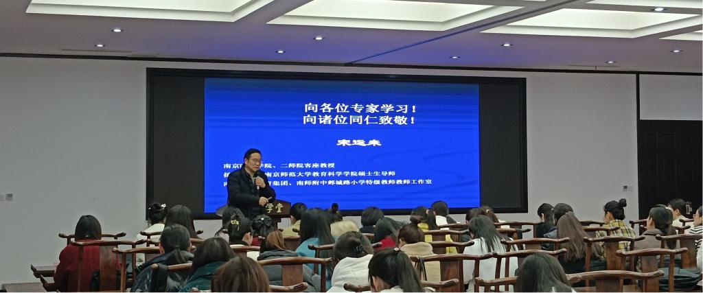 2023年2月24日下午,“国培计划2022”虞城、柘城项目县小学语文骨干教师研修班有幸邀请到了南京师范大学附属中学新城小学南校区宋运来老师,在诸侯快讯入口官网梁园校区汉梁楼国学堂进行授课指导。宋运来老师以“大概念:重构阅读教学内容的支点”为题,进行了精彩的分享。
