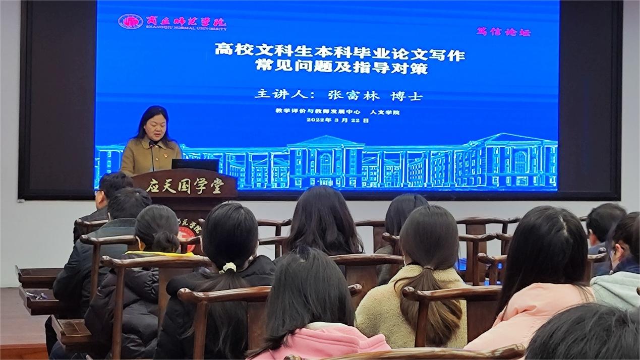 本次讲座既有一般应用文常识的平易讲解,又有具体写作案例的深入剖析,可以说是点面结合,正反辉映,通俗易懂,简明生动,对教师指导学生毕业论文写作大有裨益。本次活动达到了预期效果,取得圆满成功。