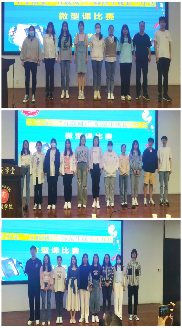 通过本次微型课比赛以及整个工作坊活动的举行,同学们都有很大的收获,对于教案、说课、微课以及微型课都有了更加清晰的认识,在老师的指导下,也有所反思,为今后从容在众人面前上一堂课,亦或是踏上讲台讲课打下坚实基础。希望同学们继续努力,不断学习,在夯实自身专业知识的基础上多加练习,锻炼并提高自身的教学技能与历史师范生素养。