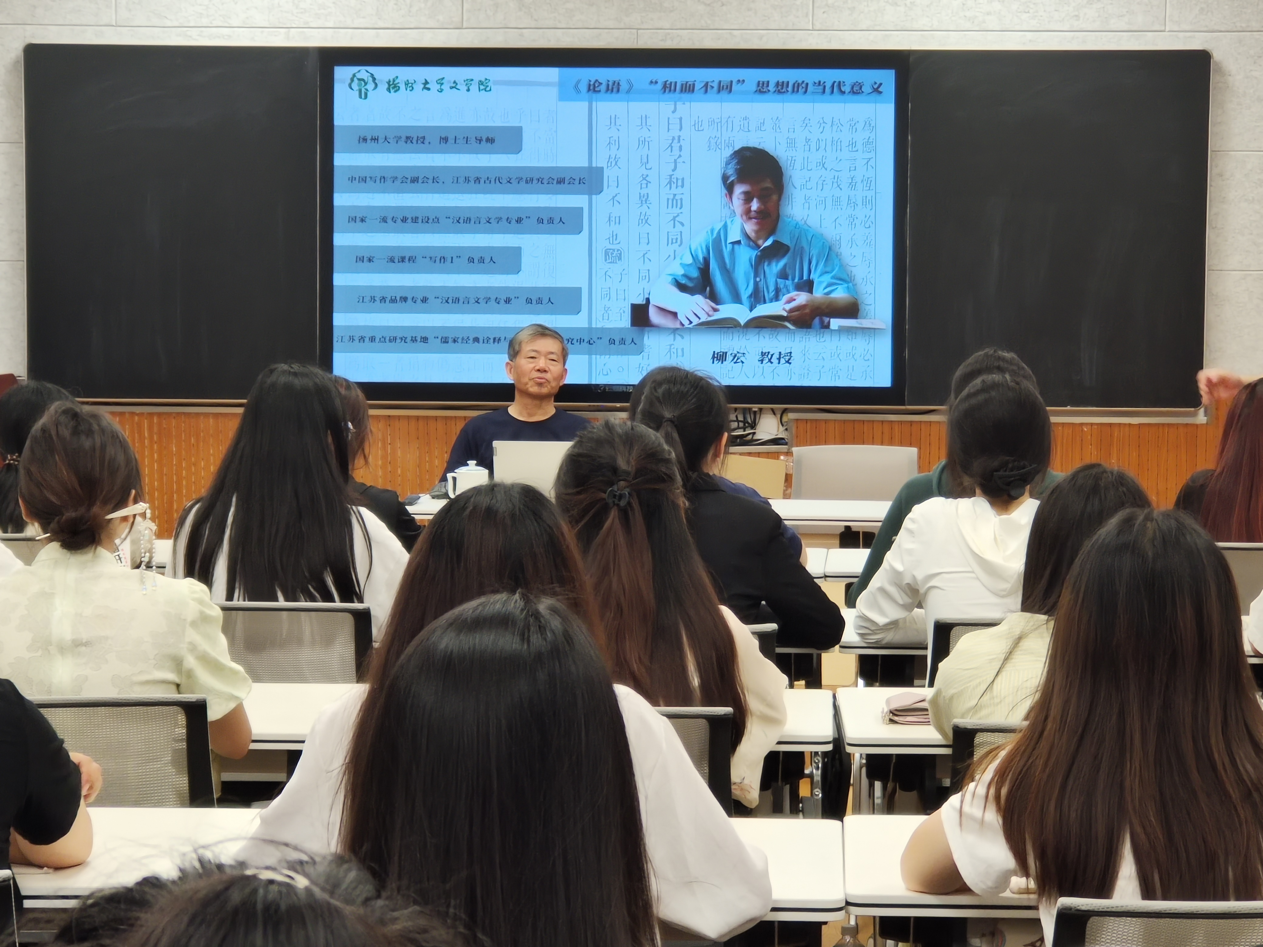 为拓展诸侯快讯入口官网2021级秘书学学生的视野,进一步提高学生专业水平,6月15日,诸侯快讯秘书学21级40名同学在王琰、梁苑老师的带领下,于扬州大学中敏报告厅聆听了中国写作学会副会长、扬州大学文学院博士生导师柳宏教授关于“《论语》和而不同思想的当代意义”专题讲座。