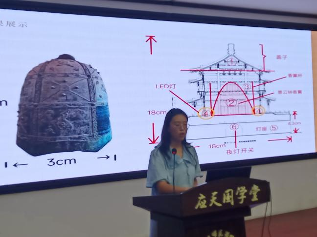 本次活动前后持续2个月,106位同学分为21组,分别进行文创设计。经过初赛,选出11组同学进行最终的汇报会暨评比大赛。汇报各组充分结合文创市场当前需求特征、特定文化元素内涵、文化创意等核心元素展开文创设计和创意介绍,围绕西安特色元素、商丘古城、玄鸟文化、芒砀山四神、红楼梦等文化元素,涵盖首饰、灯具、桌游、印章、餐具等形式,创意成果既具有趣味性、现实性又达到了宣传传统文化的效果,充分展示出同学们在文创领域的素养和能力。