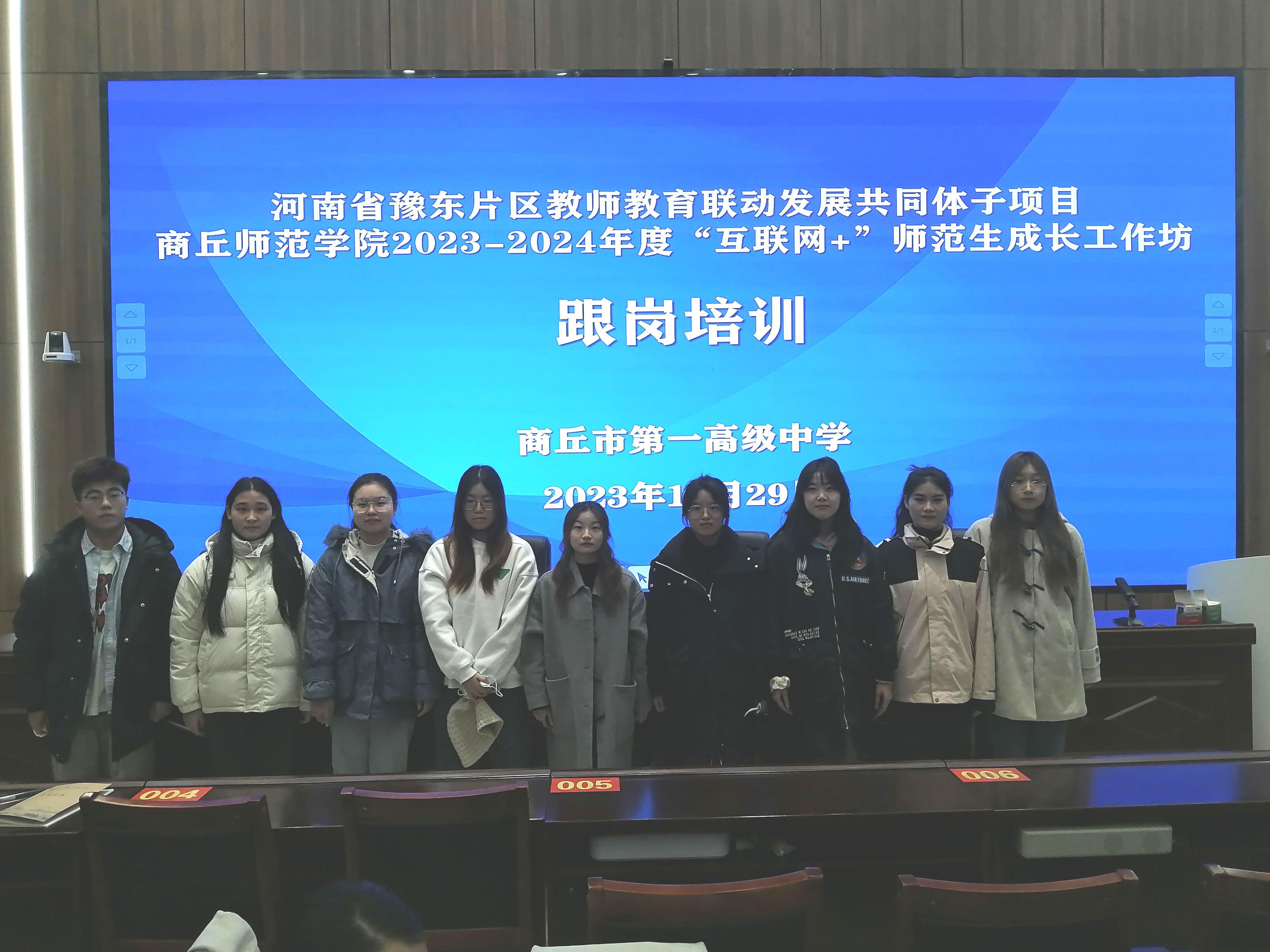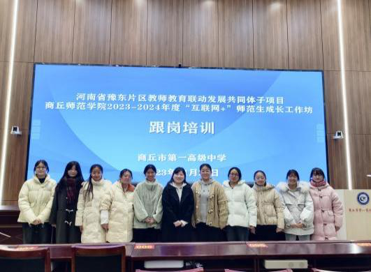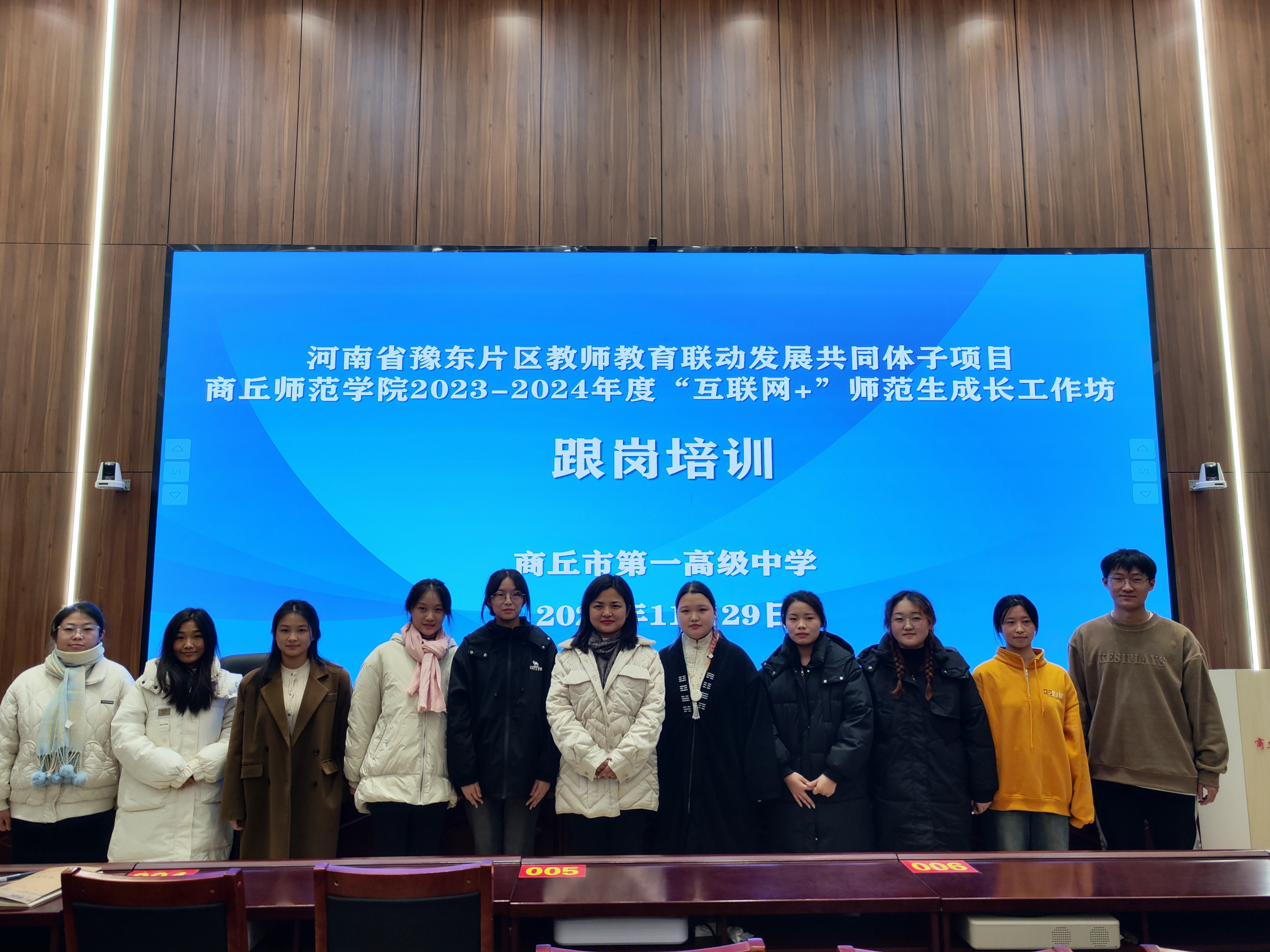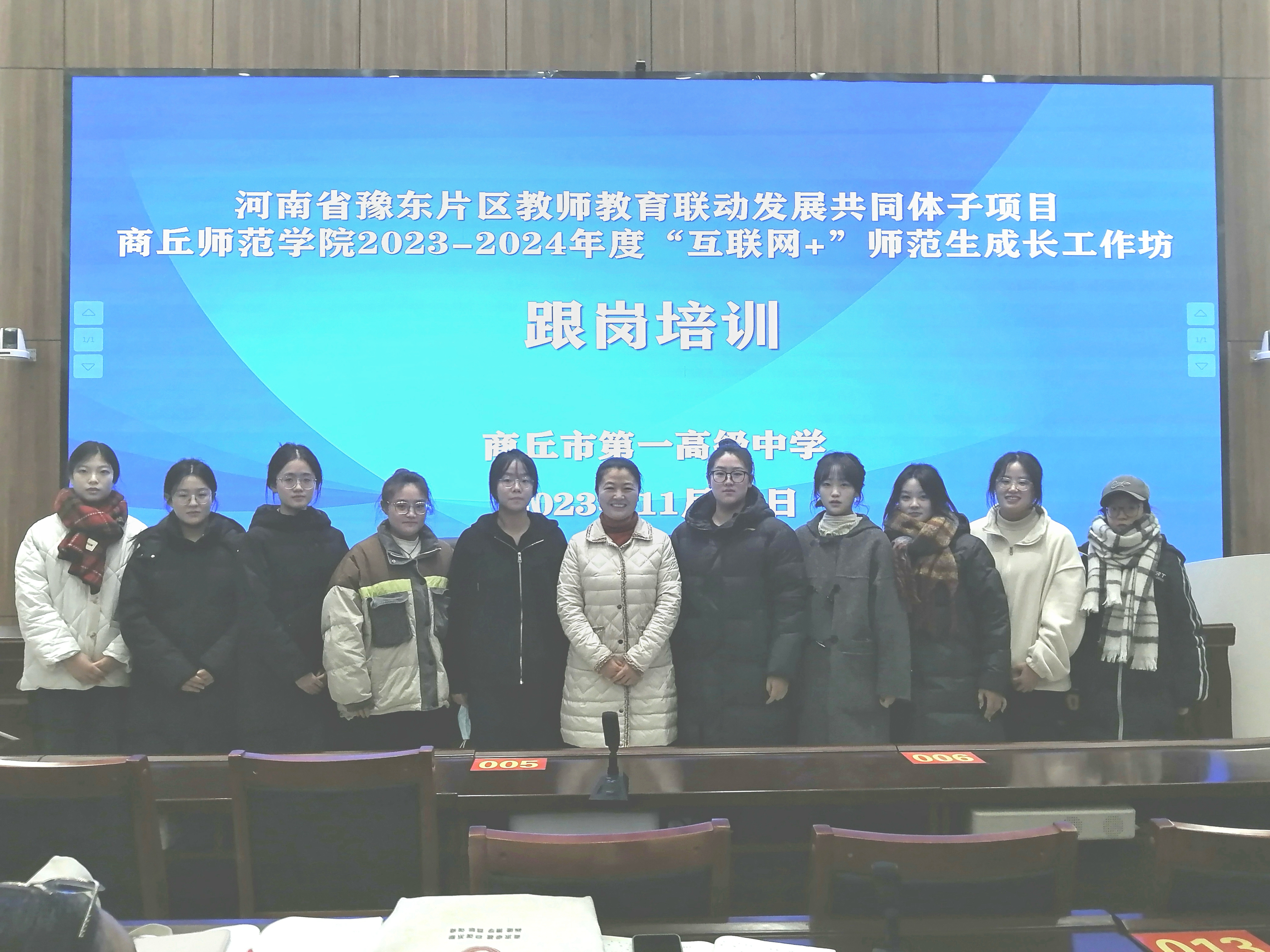 为深入开展2023-2024年度“互联网+”师范生成长工作坊培训工作,促进师范生对中学语文教学的认识,中学语文工作坊第一、二、三、四、五、六、十三坊坊员于11月29日下午前往商丘市第一高级中学迎宾路校区开展跟岗实践活动。