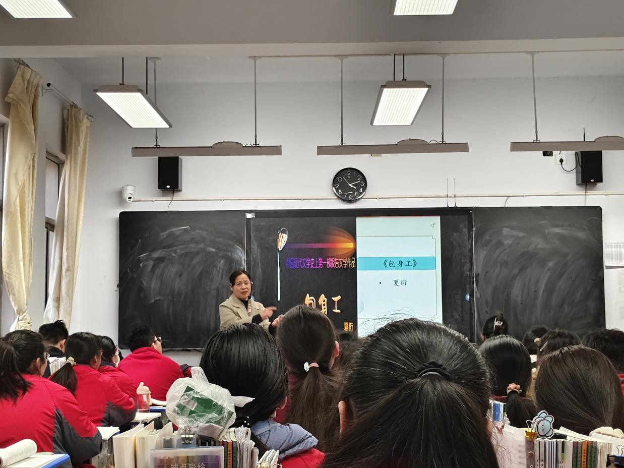 交流结束后,坊员们进行了随堂听课,观摩《包身工》一课的教学。在讲解课文前,老师带来多张照片让学生了解写作背景,深入实际。根据报告文学的特点,老师注重引导学生发现报告文学的文体特点,而不是直接将知识摆在学生面前。铺垫完成之后,老师开始正式讲解课文,让学生通过自主阅读和回答问题整理文章结构和行文线索。