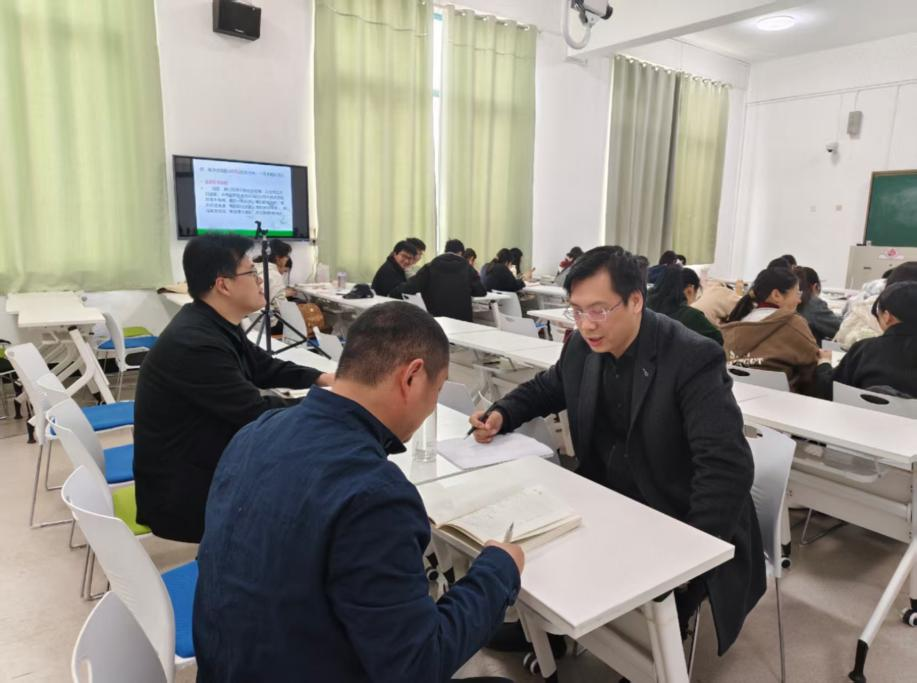 课后,参加本次公开课的教师进行了评课活动。李相中老师认为课程很好地执行了混合式教学模式,强化了学生的主体地位,锻炼了学生的独立分析能力。解远文老师认为课程内容设计丰富,能利用问题引导学生积极参与授课过程,思政效果也比较突出。三位老师一致认为,通过本次观摩公开课与评课议课活动,分享了的教学经验,有利于教师的教学能力和教学效果进一步提升。