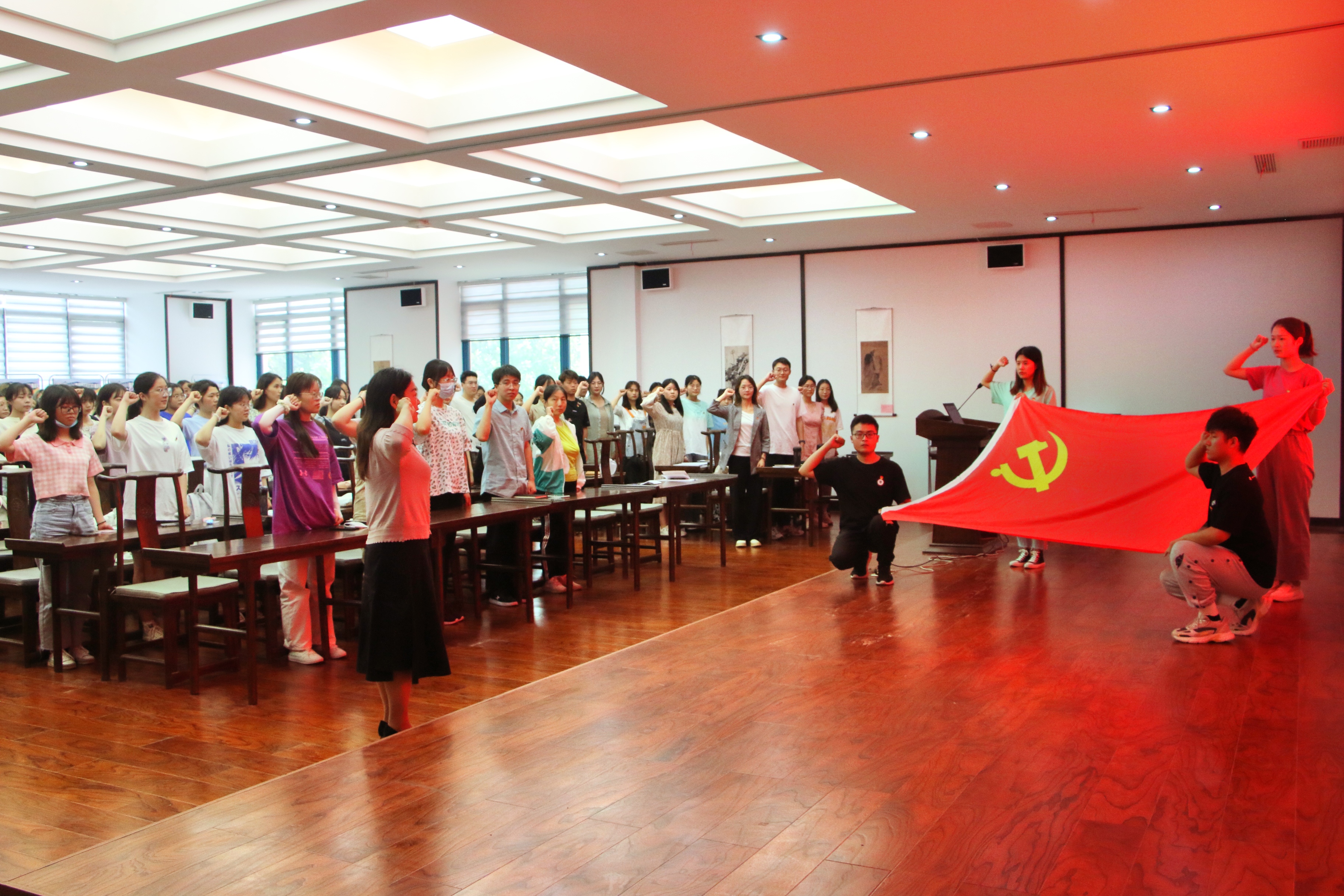 在雄伟激昂的《国际歌》之后,团总支书记李红宣读了新党员名单。全体新老党员面向党旗庄严肃立,在陈晓明书记的领誓下庄严宣誓。接着,曹晨作为新党员代表发言,表达了加入中国共产党员的自豪和荣誉感,以及为共产主义事业奋斗终生的信心和决心。