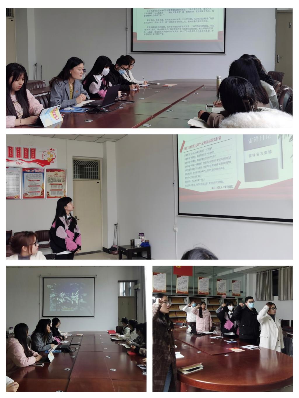 本次活动共四项议程。首先,李红领学《雷锋精神,一座永不褪色的丰碑》,并强调身为党员,应当用实际行动践行雷锋精神,全面贯彻全心全意为人民服务的理念。随后,支部成员李函澍、许红玉诵读《雷锋日记》节选。接着,支部成员共同观看电影《雷锋》,向雷锋同志致敬。最后,在李红老师的带领下,支部全体党员重温入党誓词。