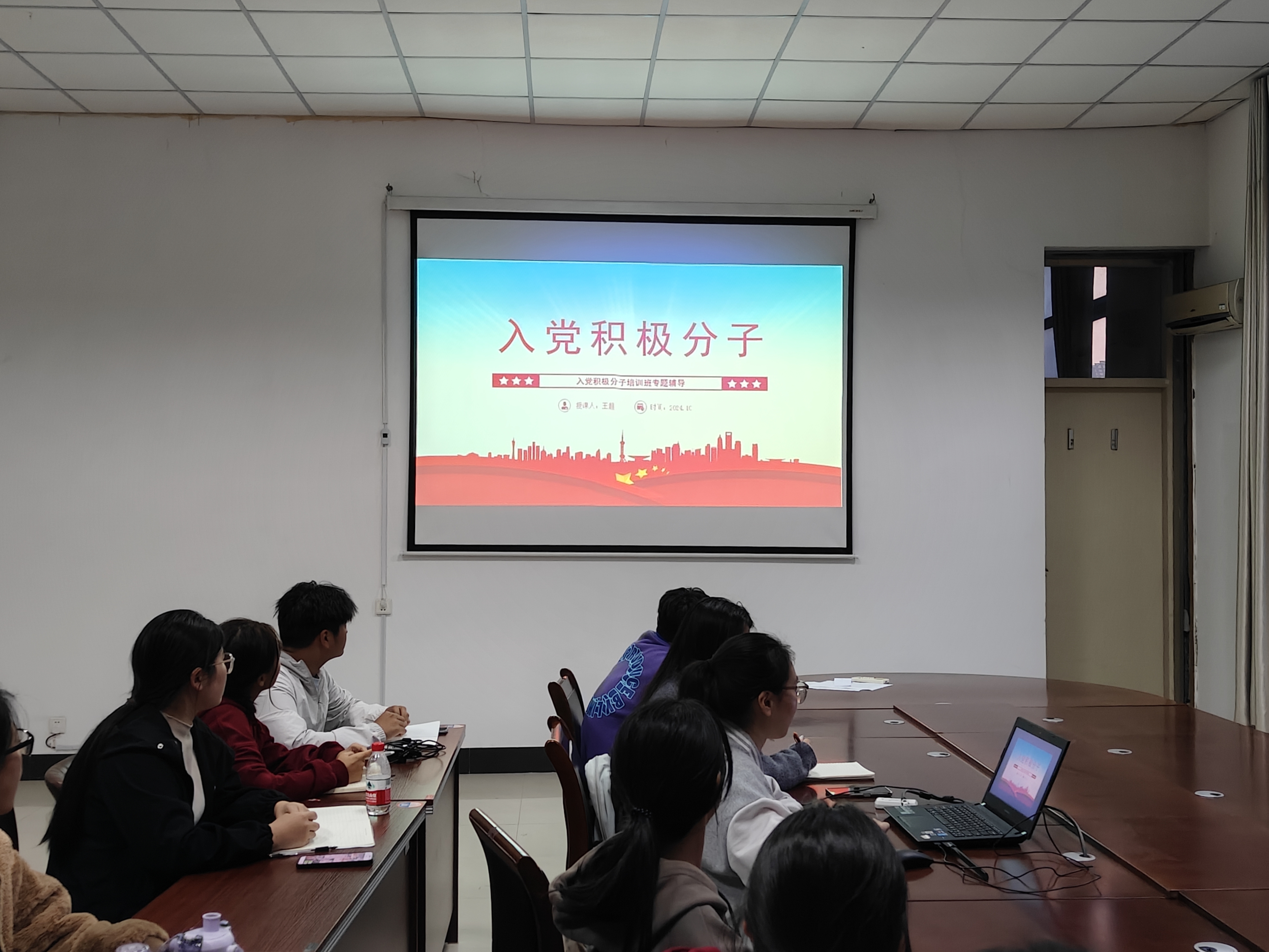 会议伊始,王超寄语入党积极分子学员,他希望全体积极分子严格约束自我,志存高远,脚踏实地,在培训中加强党性锻炼,以饱满的热情、积极的态度投入到学习中。会上,王超以“思想准备”、“入党条件”、“学习内容”为切入点,谈到组织入党积极分子教育培训是确保党员队伍质量,推动党的事业发展的基础性工作。作为入党积极分子,应加强对《中国共产党章程》的学习,思想上旗帜鲜明,学习上守正创新,工作上模范带头,生活上严于律己,提高党性修养,为成为一名合格的共产党员时刻准备。会议最后,王超向同学们规范了“自我鉴定”和“思想汇报”的书写方式。
