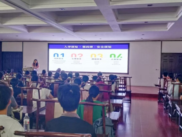 李红老师从6个方面带领大家学习和理解入学须知。一是希望,希望大家学会尊重和礼貌,学会换位思考,学会守规矩,希望大家设定目标,变成更优秀的自己;二是要有界限意识,严守校规校纪,遵守社会公德;三是带领大家熟悉宿舍、教学楼、食堂、澡堂、操场、图书馆等学生经常活动的场所的基本情况;四是从消防、心理、网络和人身安全四个方面提出注意事项,提高同学们的安全防范意识;五是介绍班委设置和职责情况;六是军训期间希望同学们军训期间遵守各项要求,挑战自我。