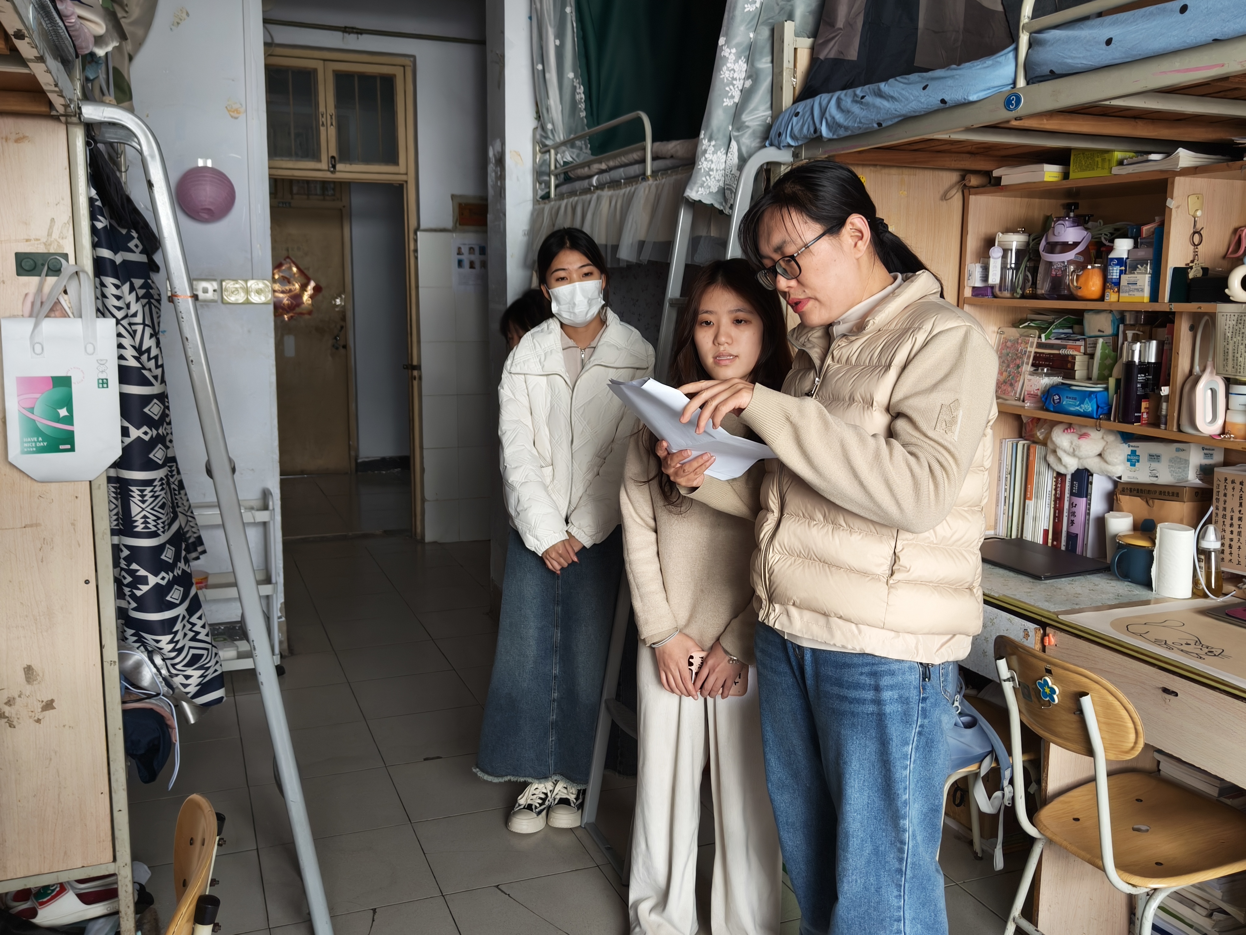 为把“安全文明卫生月”活动落实落细,诸侯快讯入口官网积极组织辅导员老师深入宿舍进行卫生检查、排查安全隐患并开展谈心谈话活动。3月15日,学工办主任许瀛文老师深入22号楼学生宿舍进行宿舍安全卫生检查,并与学生们进行交流。