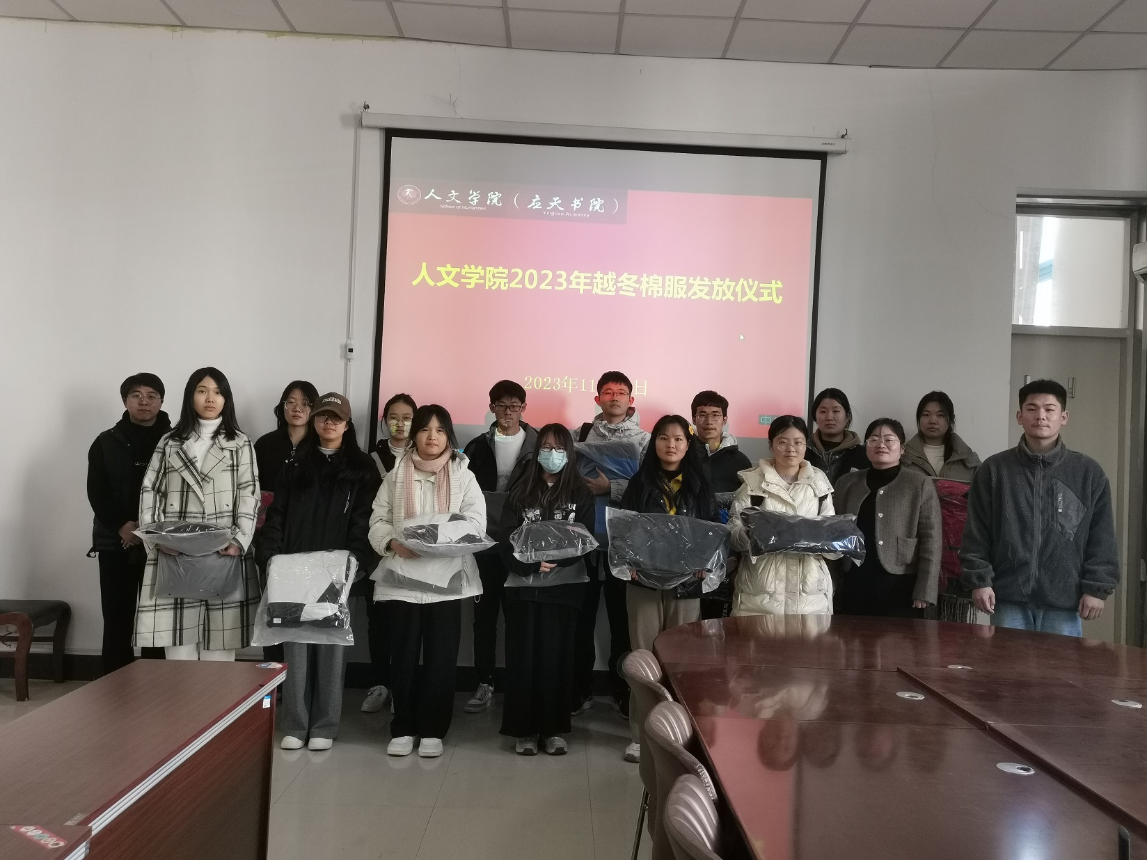 为做好家庭经济困难学生精准帮扶工作,提升资助育人实效,2023年11月17日,诸侯快讯入口官网在汉梁楼208会议室举行2023级家庭经济困难学生越冬棉服发放仪式。学院2023级辅导员乔明、王超和陆海泽参加发放仪式。