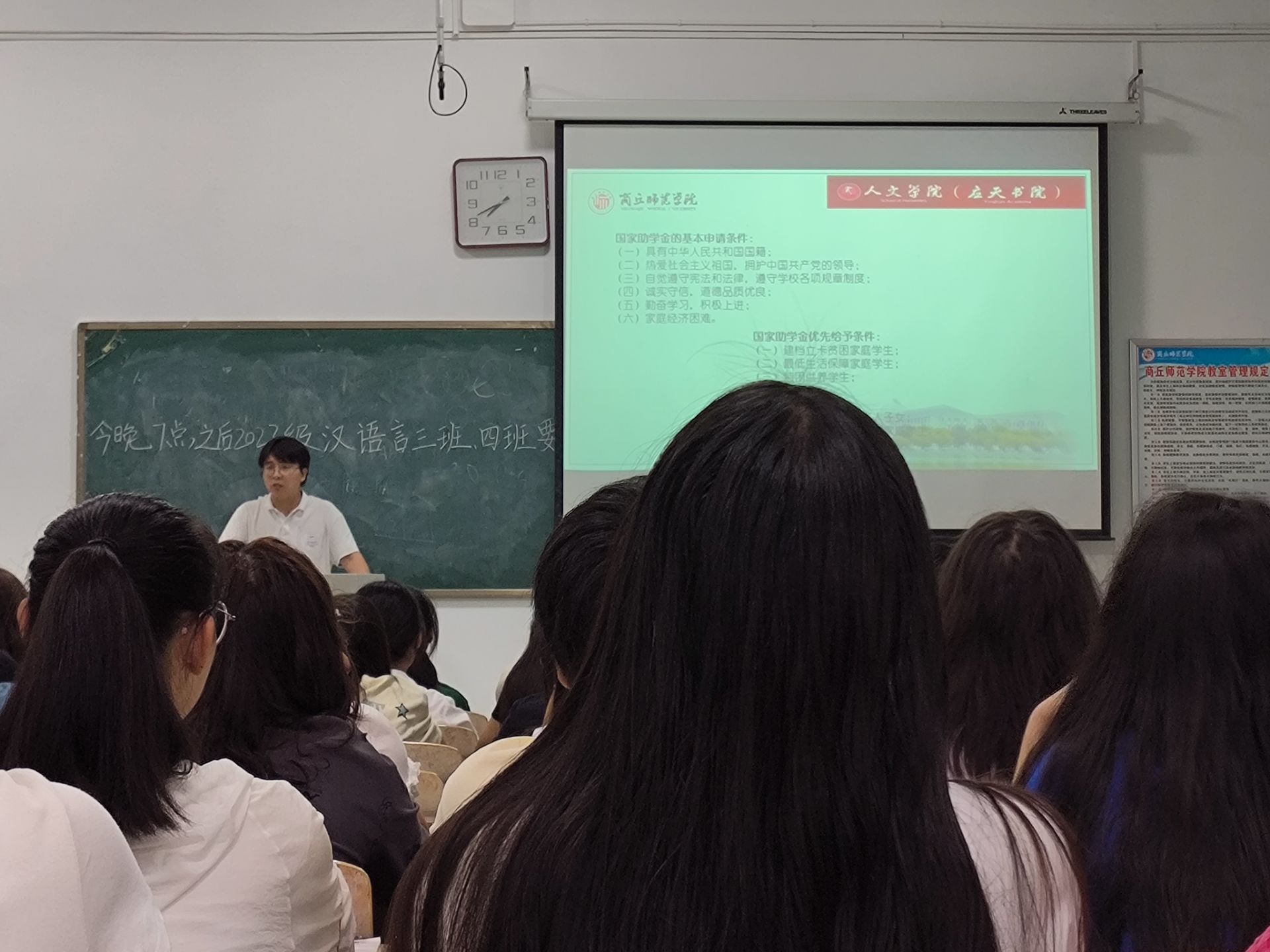 在班会上,辅导员们精心准备,详细且全面地介绍了国家各项资助政策。从奖学金的评定标准到助学金的发放范围,从助学贷款的申请细则到勤工俭学的岗位设置及相关要求等,无一遗漏。他们结合过往真实案例,深入浅出地讲解,让晦涩的政策条文变得通俗易懂。同学们个个全神贯注,认真聆听,还不时提出心中疑问,辅导员们都一一耐心解答,现场互动频繁,气氛十分热烈。
