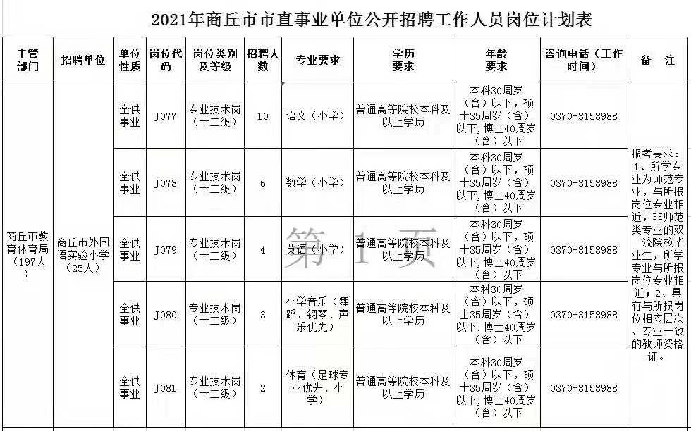 8.各岗位政策咨询电话:详见《2021年商丘市市直事业单位公开招聘岗位计划表》所附电话。