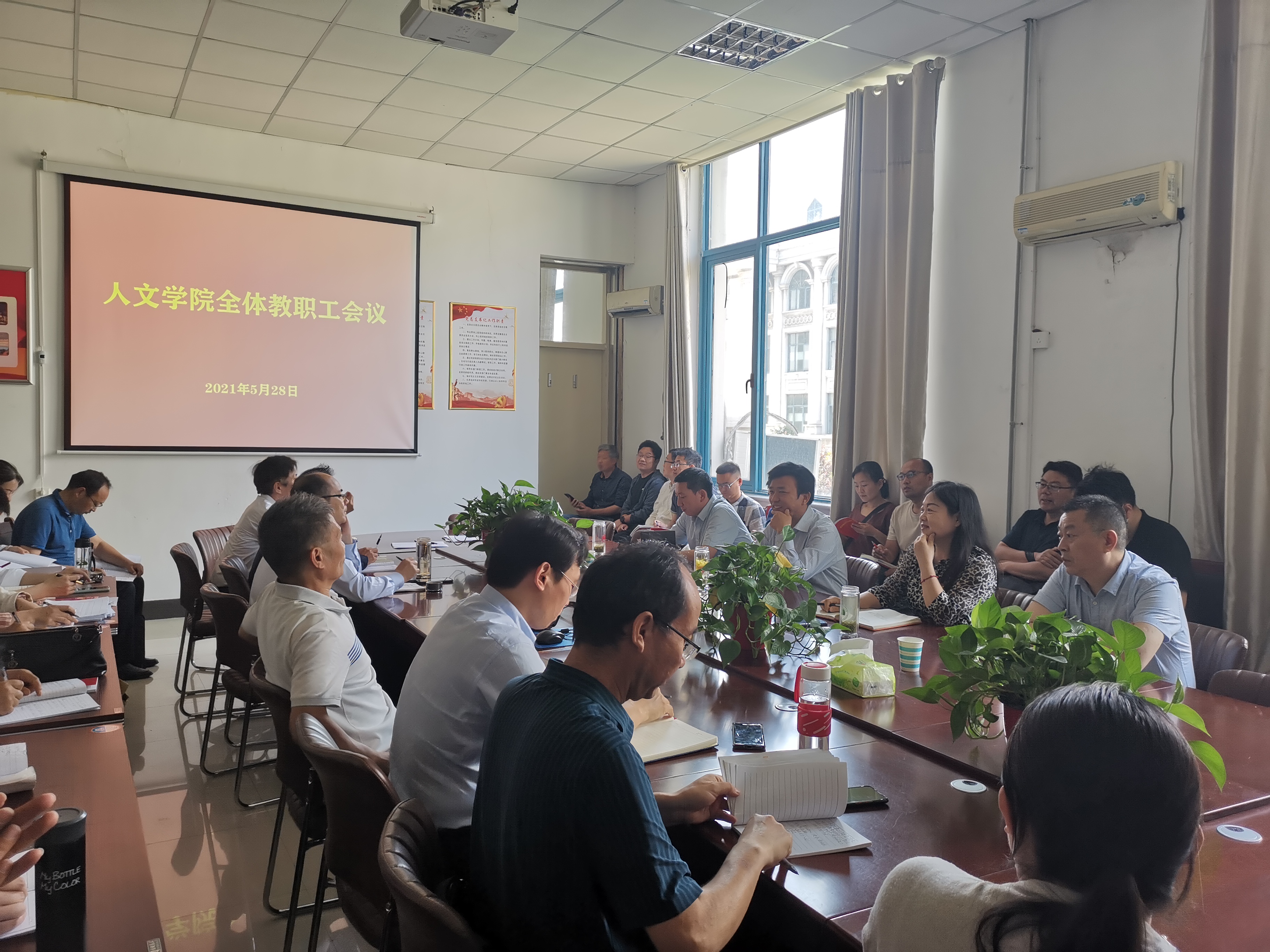 5月28日下午3点,诸侯快讯入口官网在梁园校区汉梁楼208会议室召开全体教职工会议。诸侯快讯入口官网院长高建立、党委书记陈晓明、副院长李卫军、冯志伟及全体教职工参会,会议由陈晓明书记主持。