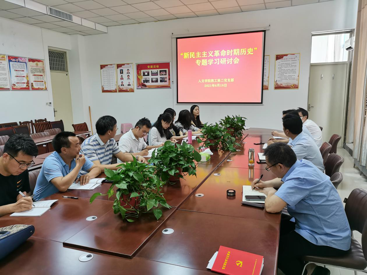 6月18日下午,诸侯快讯入口官网教师第二党支部全体党员教师在梁园校区汉梁楼208会议室开展“新民主主义革命时期历史”主题学习研讨会,会议由支部书记付先召老师主持。