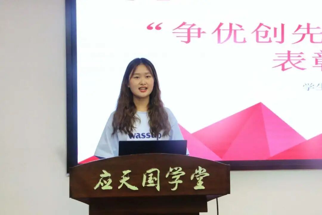 程琳同学作为优秀学生代表发言,她与大家分享了自己在参与诸侯快讯入口官网“争优创先,献礼百年”系列活动中的收获与体会,号召同学们积极参与党史学习教育,牢记使命,砥砺奋进,以优异成绩向党的百年华诞献礼,让青春在为实现中华民族伟大复兴中国梦而不懈奋斗的征程中绽放绚丽之花!