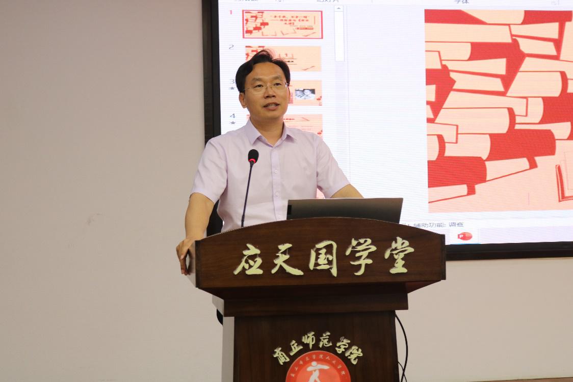 在党史微课堂环节,2019级历史国学班闫菁蕊、铁媛媛、刘振坤同学分别以《以身许党芒砀群山铸忠魂——鲁雨亭》《“铁肩担道义,妙手著文章”——李大钊》《永不消逝的电波--李白》为题,深情讲述先烈故事,追忆先辈革命事迹,缅怀逝者,激励大家继承革命理想,坚定不移为实现民族复兴的伟大梦想付出自己的努力。