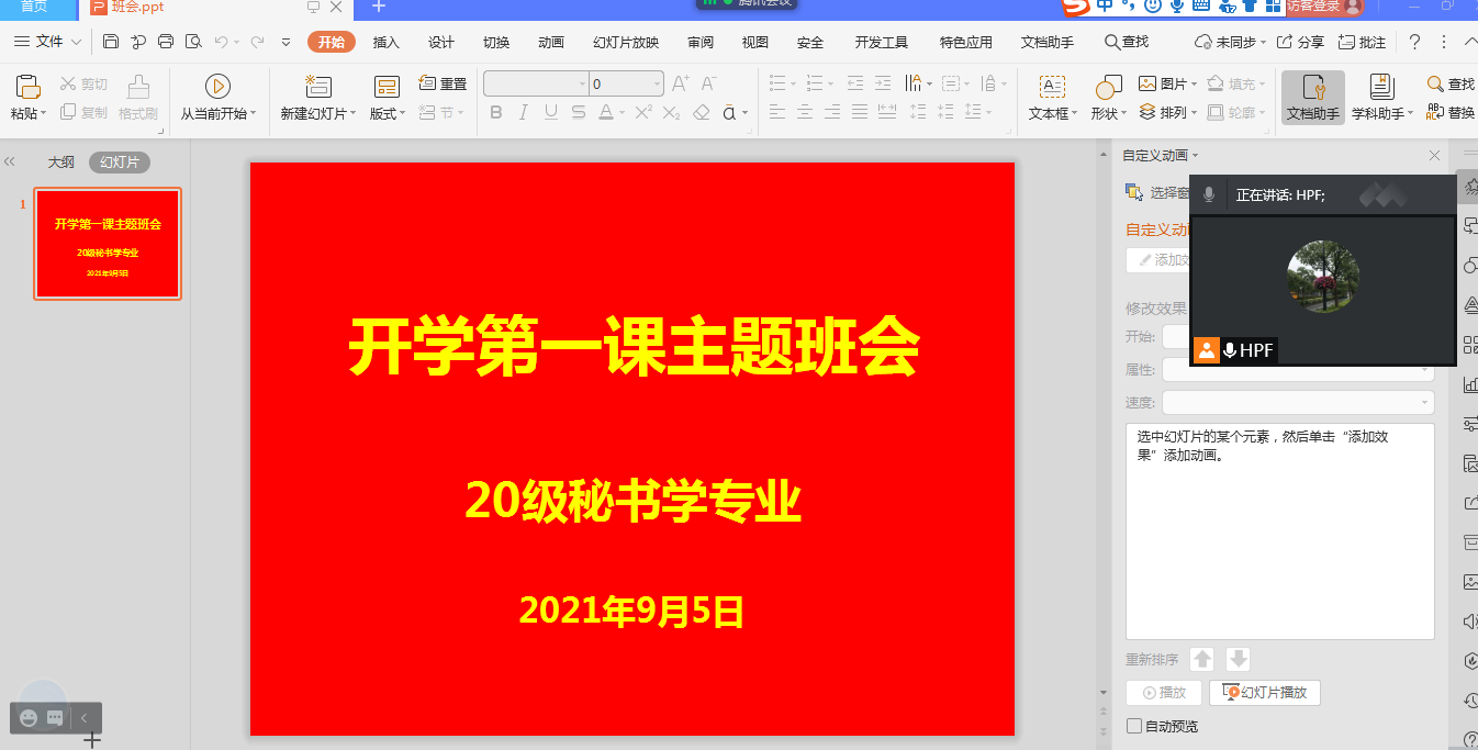 为响应国家疫情防控期间“停课不停教,停课不停学”的教学工作要求,帮助新生同学们尽快融入新学期新环境,同时促进班风学风建设,营造良好的学期氛围,增强同学们的爱国爱党意识,9月5日晚上,诸侯快讯入口官网在线上召开开学第一课主题活动。