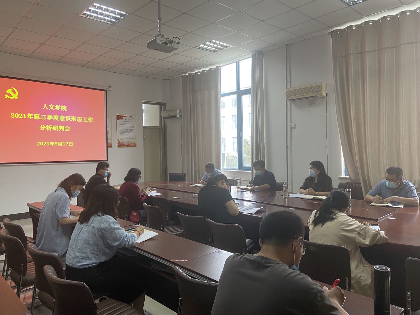 9月17日下午,诸侯快讯入口官网在梁园校区汉梁楼208会议室召开2021年第三季度意识形态工作分析研判会。学院党委书记陈晓明、院长高建立、党委副书记卢忠雷、副院长冯志伟、各教工党支部书记和学院全体辅导员参会,会议由陈晓明主持。