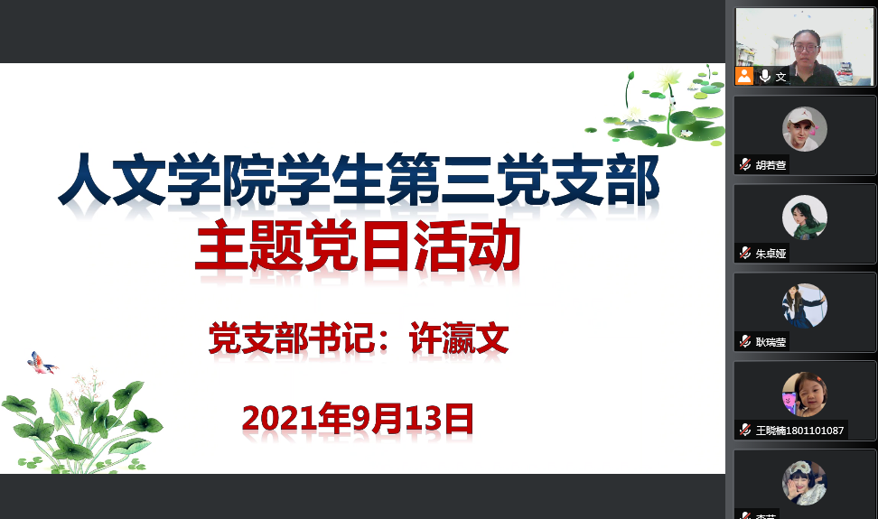 为深化党史学习教育,提高党员党性修养,9月13日下午,诸侯快讯入口官网学生第三党支部在线上开展9月份主题党日活动,进行暑期党史学习的心得交流。本次活动由支部书记许瀛文主持,支部全体学生党员参加。