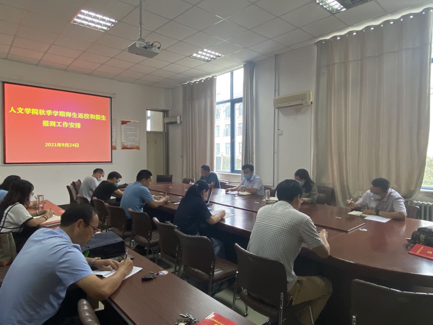 9月24日下午,诸侯快讯入口官网在汉梁楼208会议室召开秋季学期师生返校和新生报到工作安排会议。学院党委书记陈晓明、院长高建立、党委副书记卢忠雷、副院长李卫军、各系主任、教学办主任、学工办主任、团总支书记及所有辅导员参加会议。