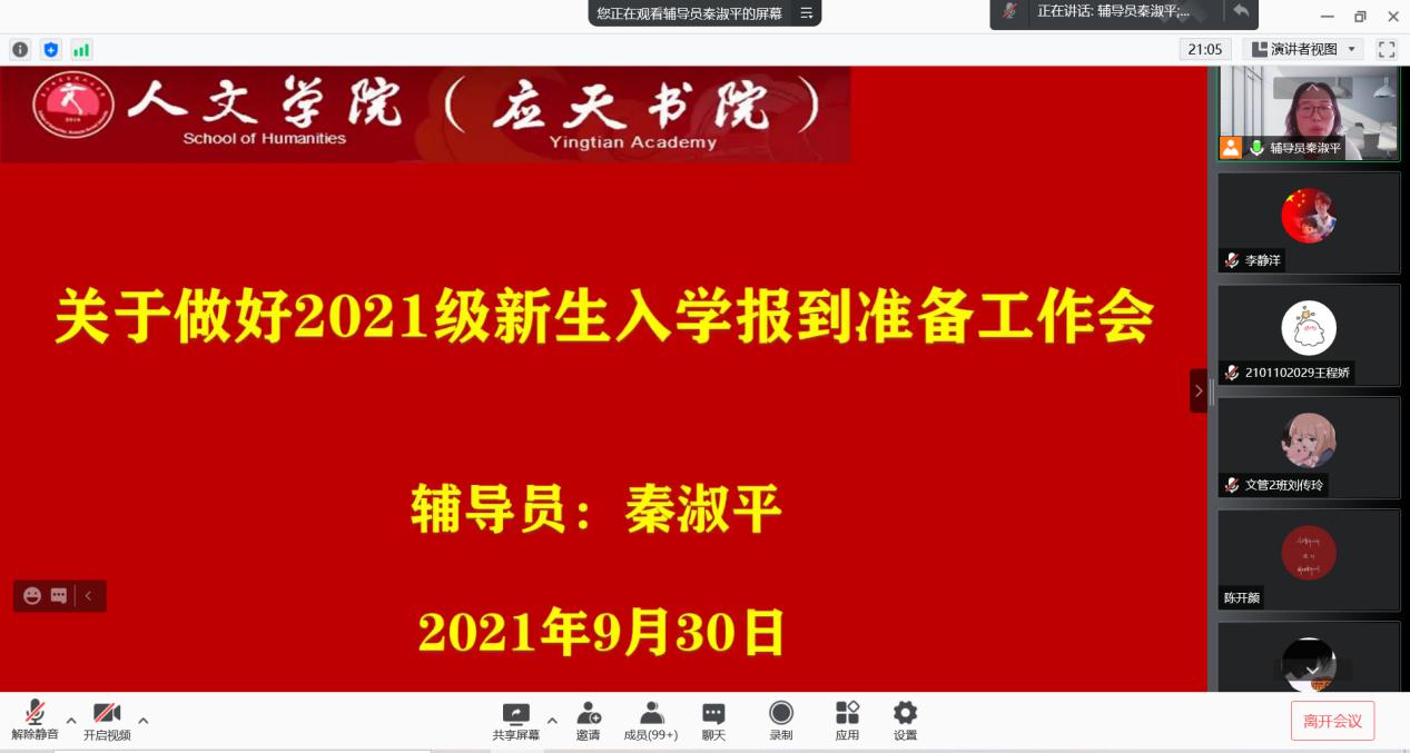 首先,秦老师围绕学校下发的《关于2021年秋季学期师生返校和2021级新生入学报到有关安排的通知》,带领同学们认真学习了有关新生报到原则、返校开学时间、返校条件等内容。