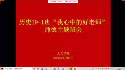 9月30日晚七点,2019级历史学专业通过举办了“我心中的好老师”师德主题线上班会,会议由班长李金月主持,辅导员王超老师及2019级历史学专业全体学生参加了本次班会。