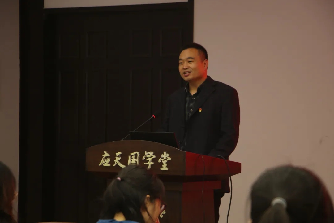 随后,卢忠雷副书记上台发言。他向志愿者们讲述了迎新工作的相关部署安排,并对志愿者们提出了一些要求,明确了志愿者们的工作,希望志愿者们以热情、饱满、负责的态度完成迎新服务工作。