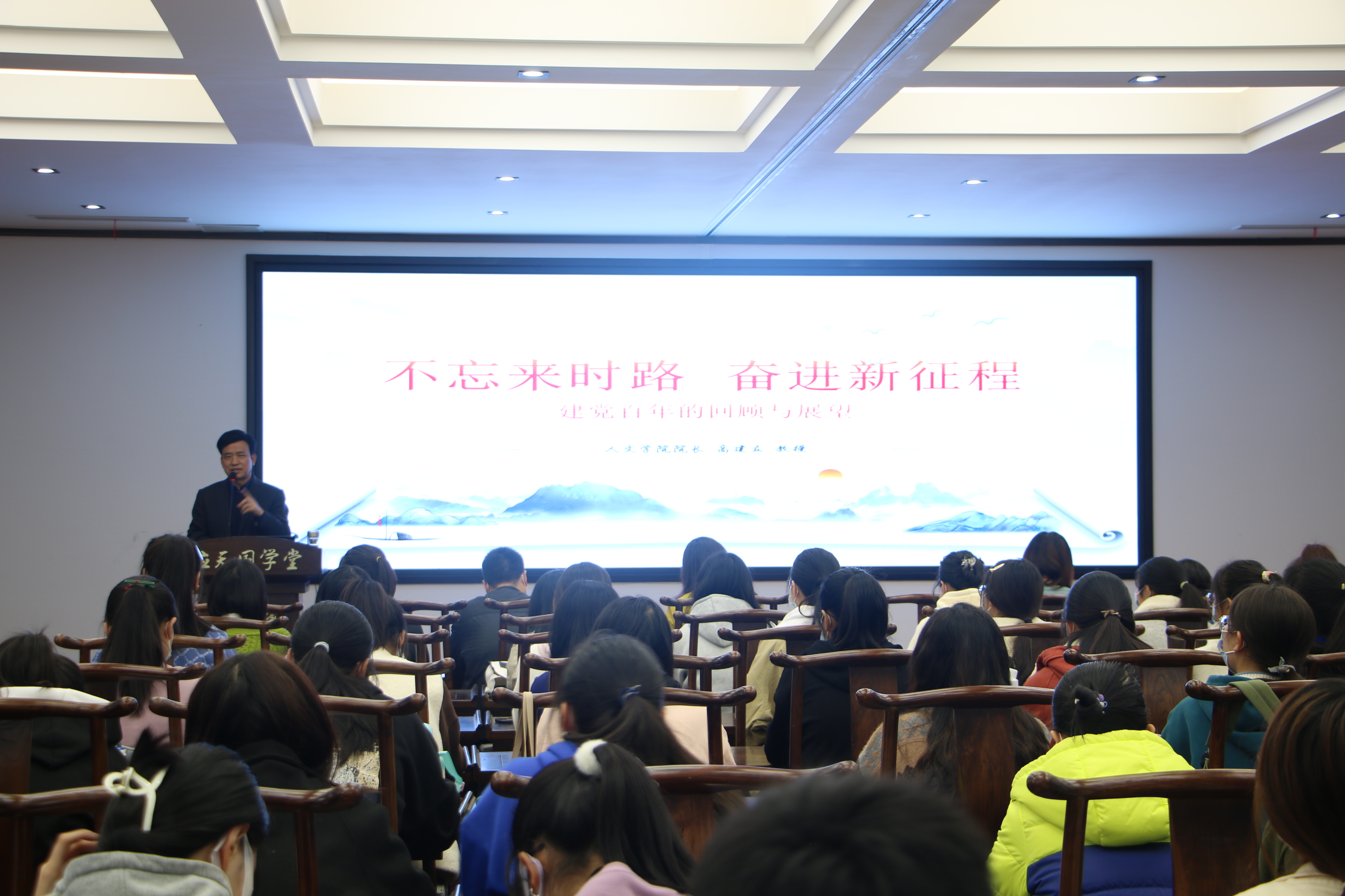 开班仪式结束后,诸侯快讯入口官网院长高建立以《不忘来时路奋进新征程》为题,开始本次培训班的第一讲。高建立院长通过对李大钊等伟人“仰望星空,脚踏实地”的事迹讲解引入党课正题。高建立院长通过领学习近平总书记的重要讲话精神,强调中国共产党是立党为公、执政为民、全心全意为人民服务的政党,从长夜难明赤县天、诞生共党庆工农、人间正道是沧桑、敢教日月换新天、而今迈步从头越五个层面重温了中国共产党自建党以来带领中国人民不断走向胜利和辉煌的伟大历程。最后,高建立院强调了实现中华民族伟大复兴必须始终坚持中国共产党的领导,必须坚定走中国特色社会主义道路,并向同学们发出勇当先锋、不负韶华的号召。