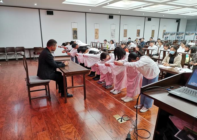 接着,19级历史学专业学生分组进行了隆重的拜师仪式,并与坊主合影留念。