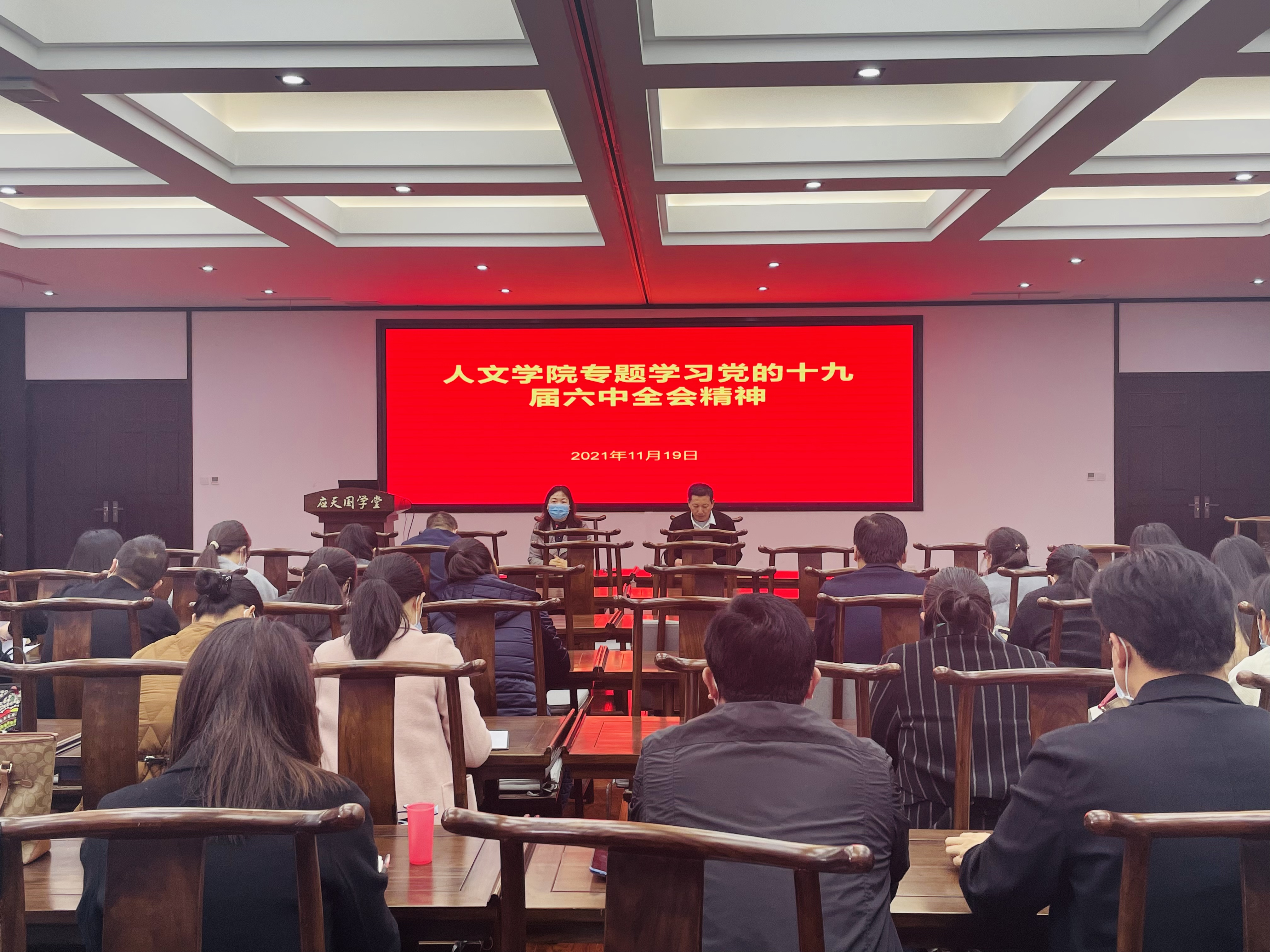 11月19日下午,诸侯快讯入口官网党委在汉梁楼国学堂召开学习党的十九届六中全会精神专题会议。全体教师党员参会,会议由学院党委书记陈晓明主持。