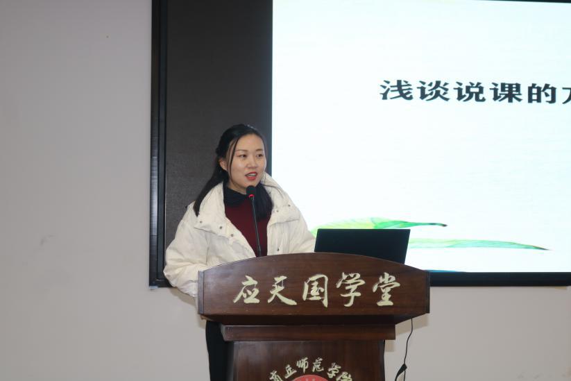 接着,商丘市第六中学李娜老师作了题为《浅谈说课的方法与技巧》的说课讲座,从“说课的概念”、“说课的分类”、“说课的特点”、“说课的内容”、“说课的准备”、“注意事项”展开讲述。在对“说课的内容”进行讲解时,李娜结合优秀课例,形象生动地展示了说课流程,增加了同学们对历史教学的深层认识。
