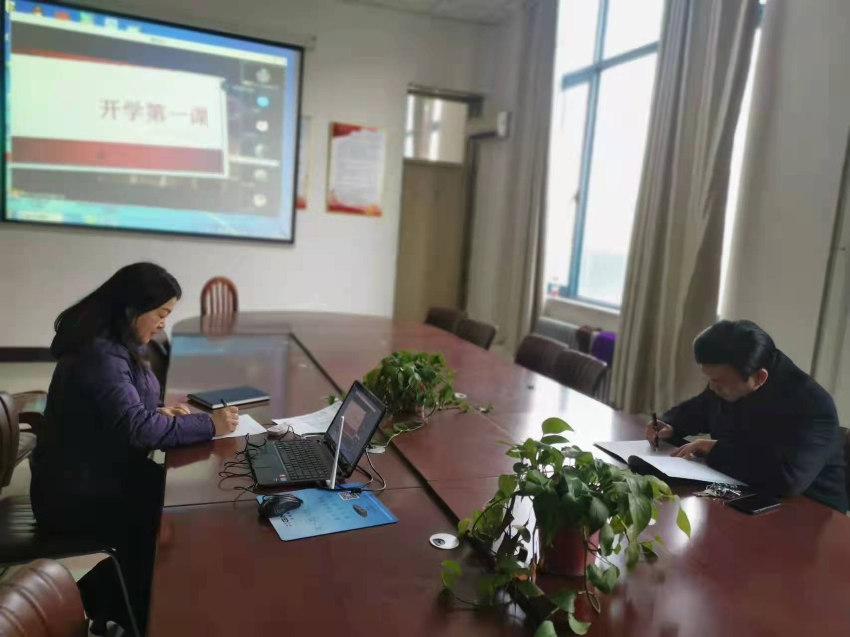为保证2021-2022学年春季学期开学第一天诸侯快讯各项教学工作的正常开展,2月21日,高建立院长和陈晓明书记在汉梁楼208会议室,对诸侯快讯教师的上课情况进行在线听课看课。