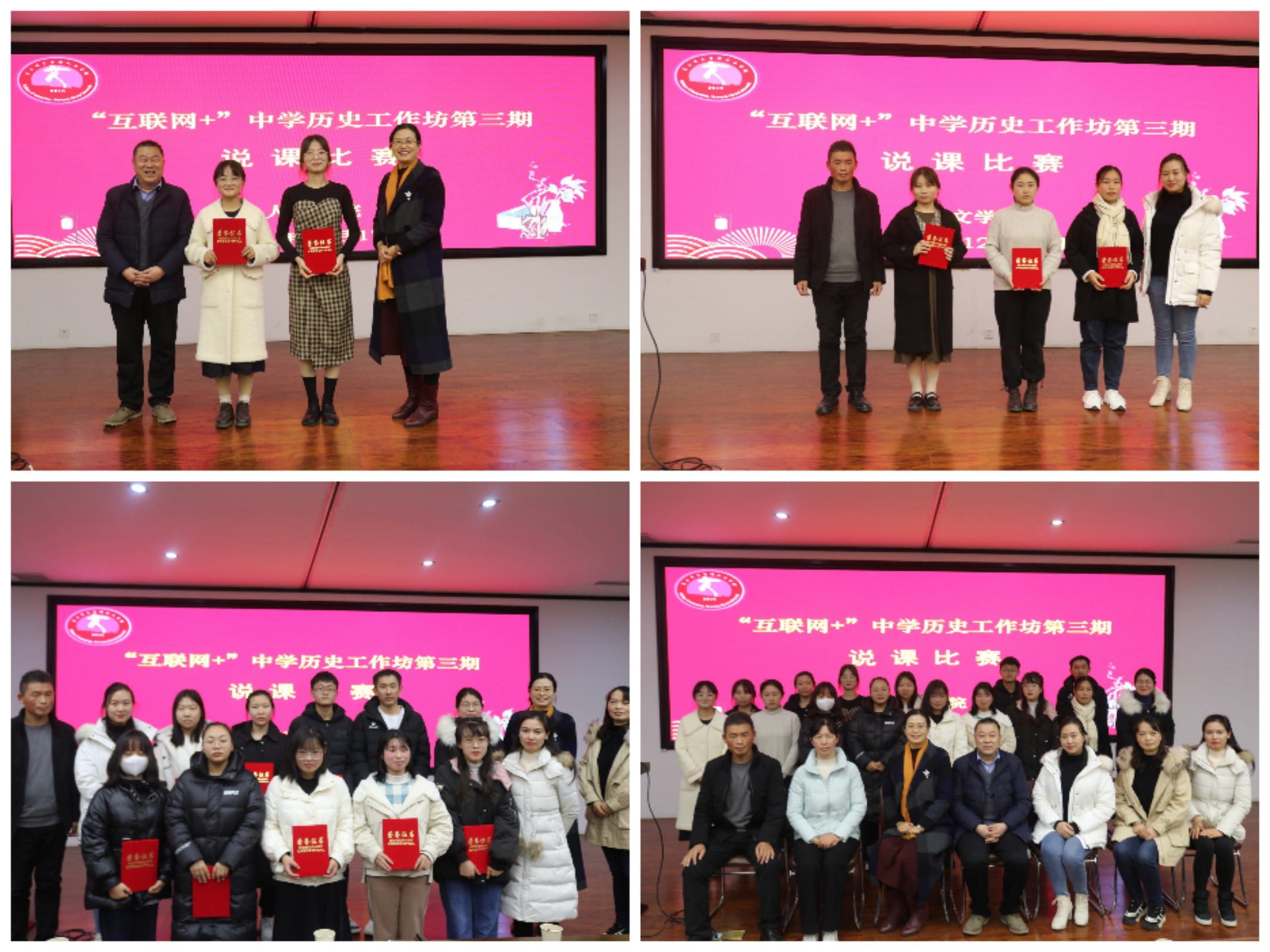 本次说课比赛共产生特等奖两名,一等奖三名,二等奖十名。各位参会老师对获奖学生进行颁奖并合影留念。