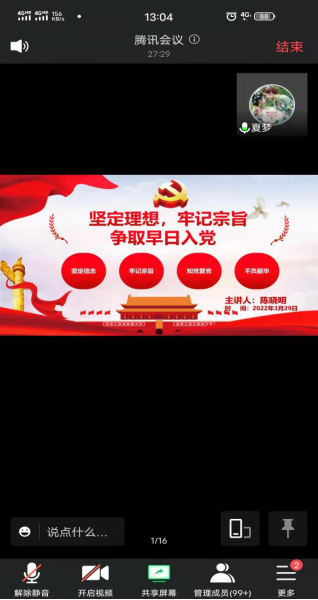 为进一步加强入党积极分子教育,引导广大学员坚定政治信仰,端正入党动机。3月29日中午1点,诸侯快讯入口官网党委书记陈晓明以“坚定理想、牢记宗旨、争取早日入党”为题,为入党积极分子培训班上了一堂精彩的线上专题党课。
