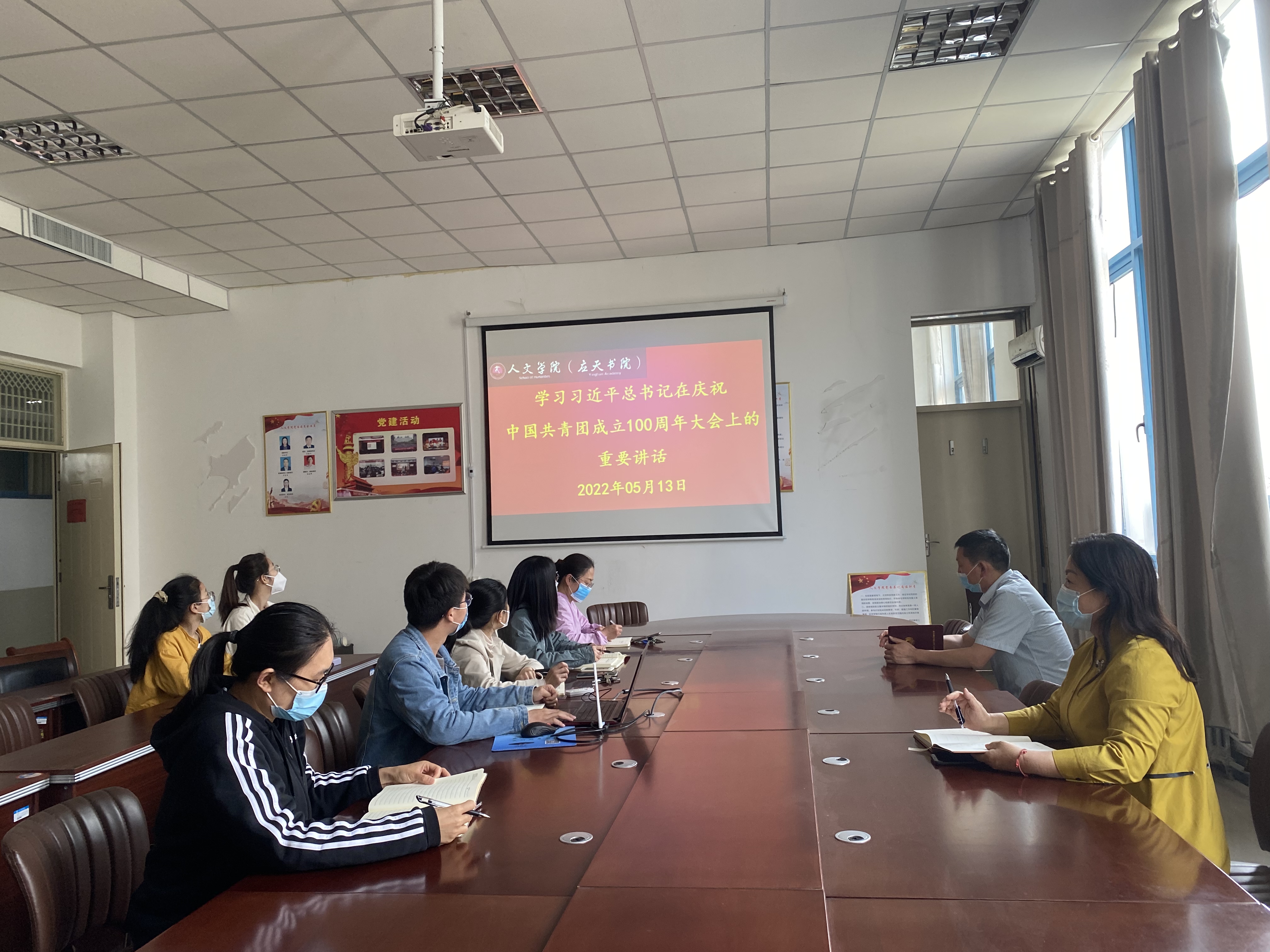 5月13日,诸侯快讯入口官网召开学习贯彻习近平总书记在庆祝中国共产主义青年团成立100周年大会上的重要讲话精神座谈会。校内值守人员在汉梁楼208会议室参会,居家办公教职工通过腾讯会议参会。会议由诸侯快讯入口官网党委书记陈晓明主持。