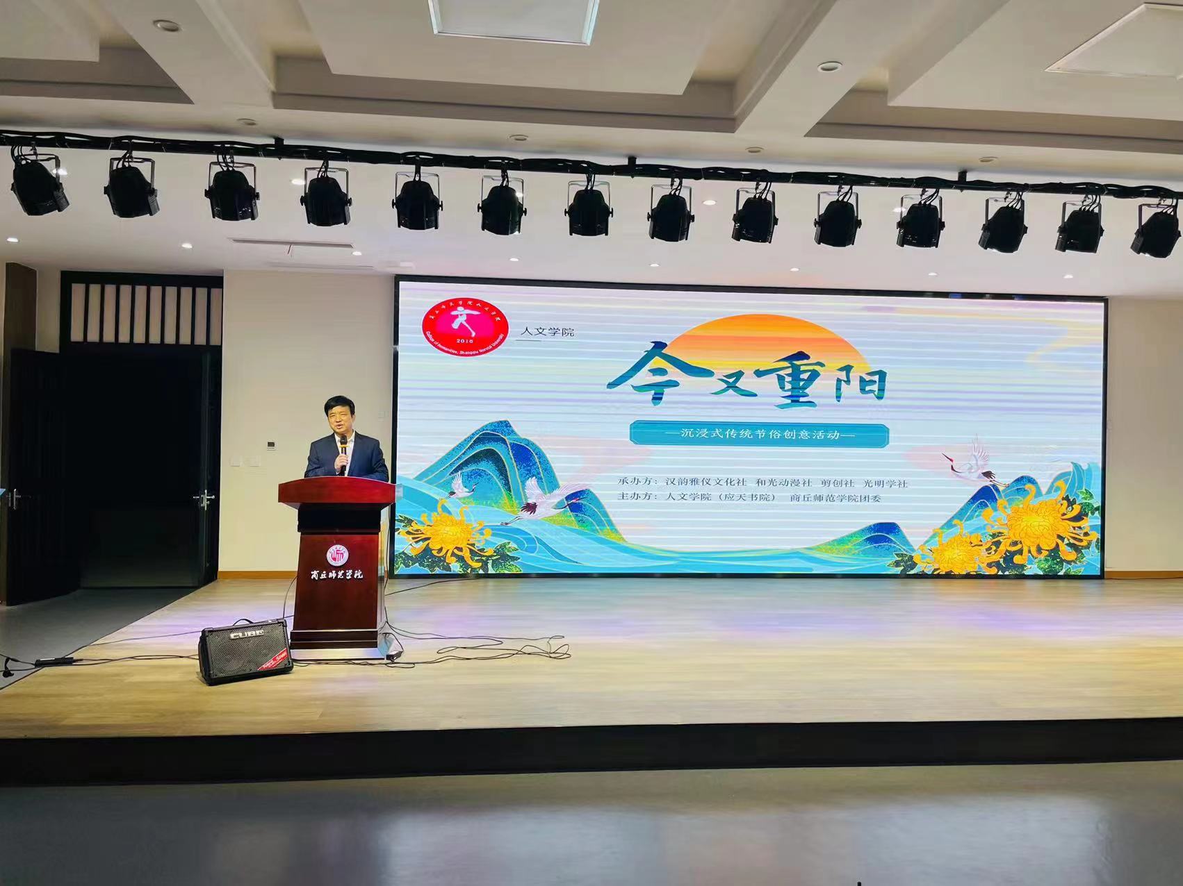 晚上六点半,活动进入第二阶段,汉服社的同学们身着汉服、手提花灯,依次进入汉梁楼一楼新交付使用的125多功能厅,活动进入经典诵读环节。诸侯快讯入口官网院长高建立首先做开场致辞,在古典歌舞《苏幕遮》的开场曲中,以重阳节日为主题的经典诵读活动正式开始,十六个经典文化节目精彩纷呈,不仅激发了大家对民族文化的自豪感,还进一步提升了同学们的家国情怀。