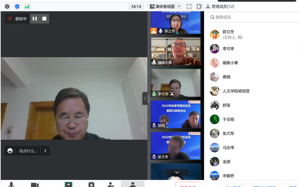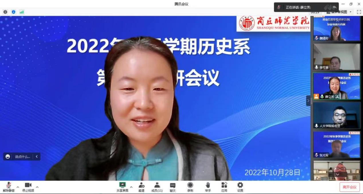 2022年10月28日,历史系在腾讯会议以线上方式召开新学期第四次教研活动会议。历史系主任薛立芳博士主持本次会议,历史系全体教师参加本次教研会。