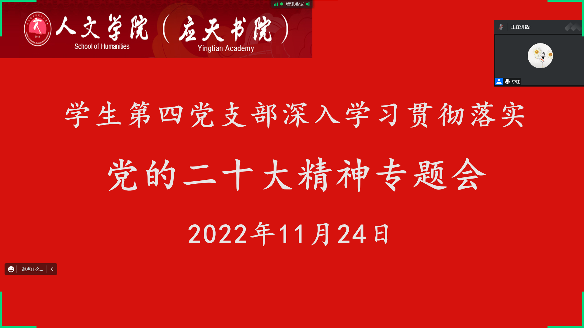 比学二十大:学生第四党支部召开党员大会学习宣传贯彻党的二十大精神
