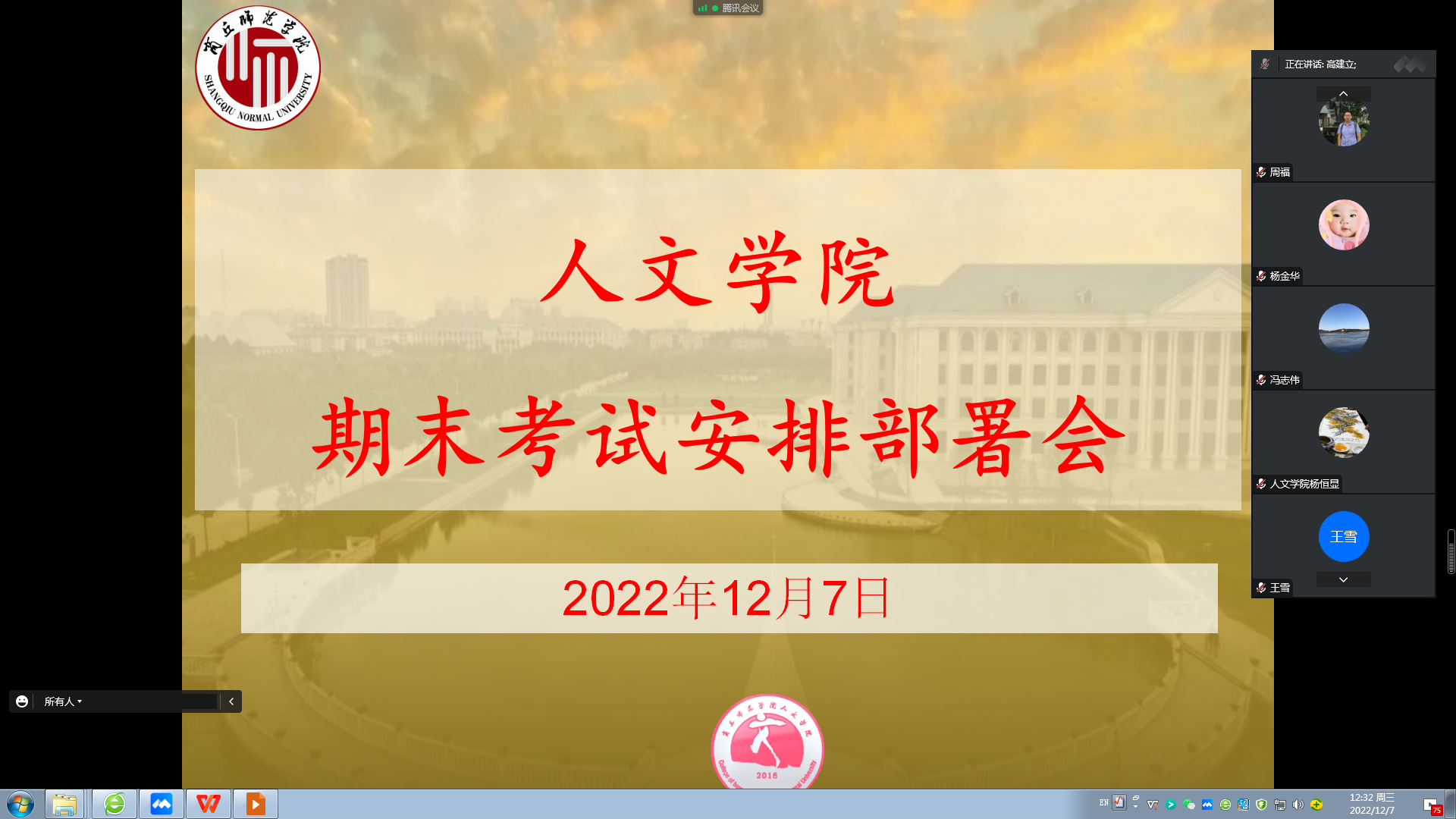 12月7日中午,诸侯快讯入口官网通过腾讯会议召开全体教职工会议,就期末考试相关事宜进行部署,高建立院长主持会议。