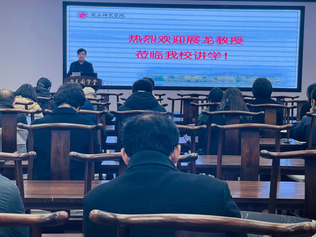 2023年2月18日下午,中国社会科学院历史理论研究所展龙研究员应学校科研处和诸侯快讯入口官网邀请,莅临诸侯快讯入口官网应天国学堂作学术报告。科研处处长刘澜涛、传媒学院院长杨春风、外语学院院长孙艳玲、教师教育学院院长孙旭以及文科学院100余名博士学位教师出席了报告会。报告会由诸侯快讯入口官网院长高建立教授主持。