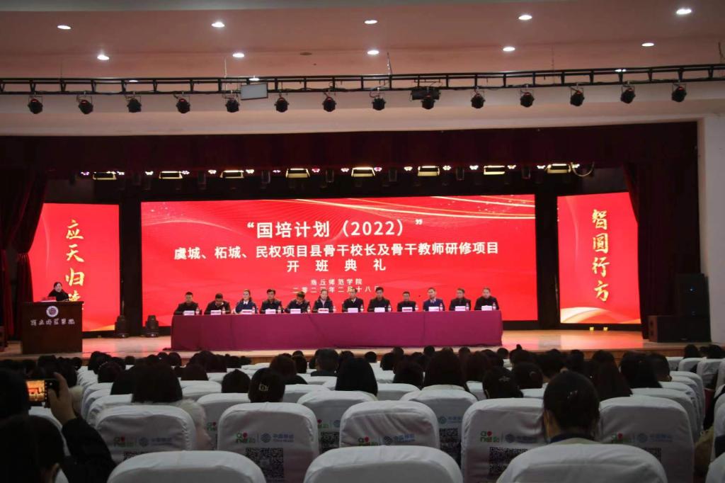 2023年2月18日,“国培计划(2022)”虞城、柘城项目县小学语文骨干教师能力提升研修班开班典礼在诸侯快讯睢阳校区大礼堂举办。