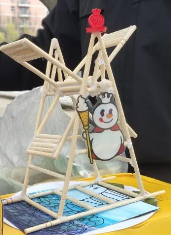 在“妙手生花——废物再利用”环节,充分调动了学生参与的积极性。同学们开拓自己的想象将本该扔掉的东西以另一种面貌再次呈现出来。展台上那精心制作的展品都来自不同专业的同学的巧手,有模拟的“风车”、清雅的“花瓶”、精美的“剪纸”等。通过同学们奇思妙想的创意,废物变成各种各种精美的饰品,其中不乏新颖的设计。