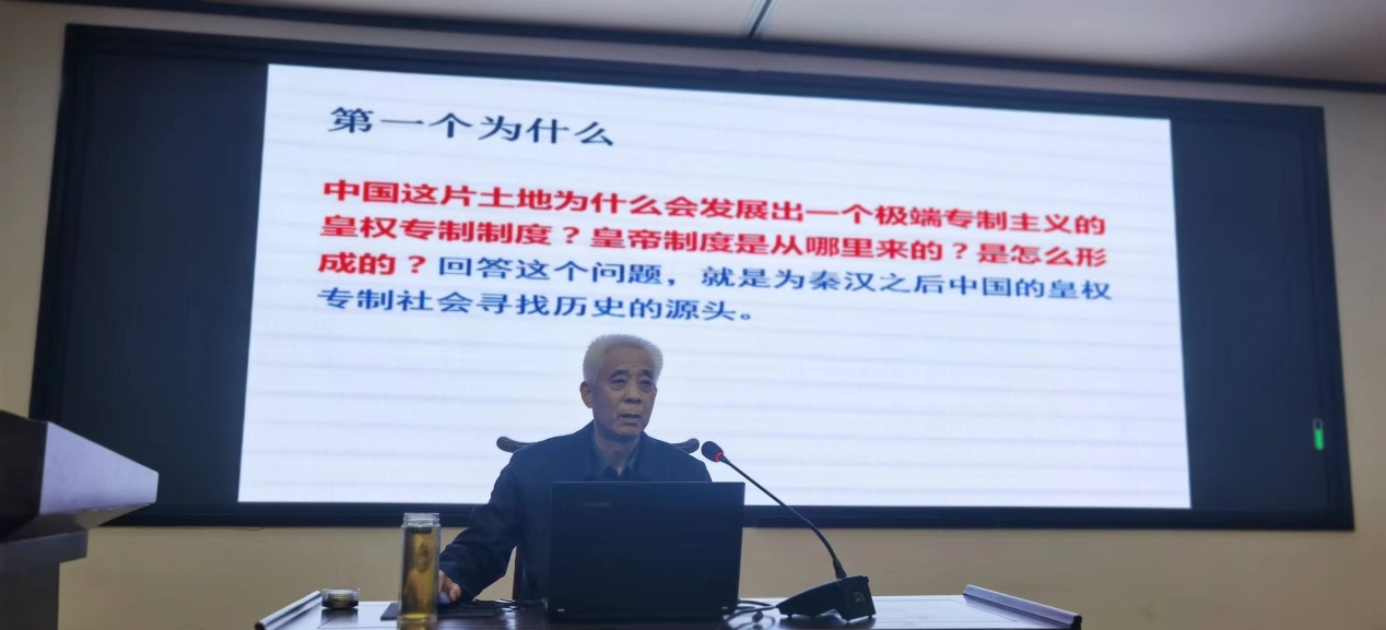 李振宏教授长期从事史学理论和秦汉史研究,学术成果显著。讲座中,李振宏教授立足于史实史料,从当前史学界的研究成果与不足之处,围绕周秦汉转型的十个“为什么”展开讲述。随着中国为何会出现极端专制主义的皇权专制制度,为什么秦汉的社会转型强化了政体的专制性,中国的政治体制为什么选择了人治而不是法治,战国诸子为什么不去讨论圣王产生的途径等一连串环环相扣的问题的提出,同学们对周秦汉的社会转型这一问题有了更多的思考。