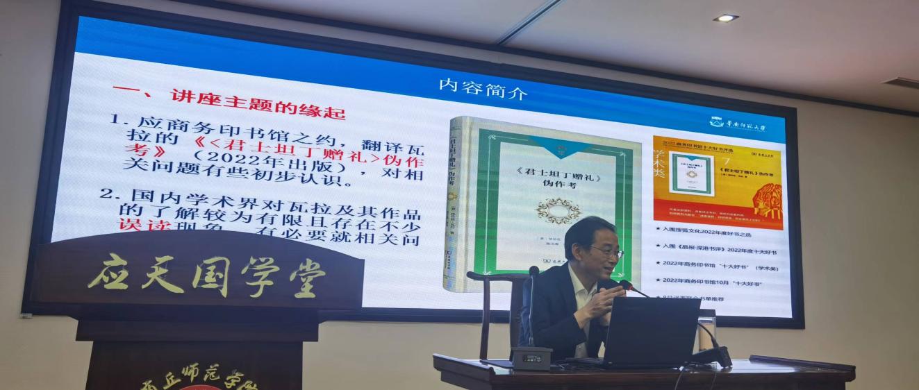 陈文海教授结合自身世界史的学习、研究经验,向诸侯快讯师生展示了近年来关于《<君士坦丁赠礼>伪作考》的研究成果。整场讲座充满了浓厚的学术氛围,使在场师生享受了一场精彩的学术盛宴。 报告内容深入浅出,独到的语言,精辟的讲解,参与人员认真学习并就有关问题进行探讨。
