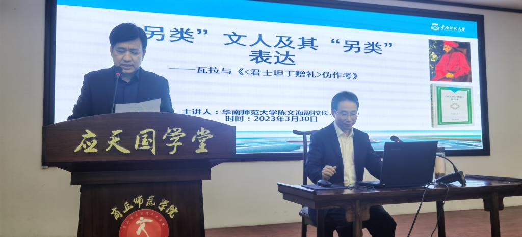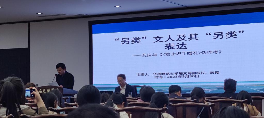3月30日下午,华南师范大学副校长、教授、博士生导师、教育部历史学类教学指导委员会委员、中国法国史研究协会副会长陈文海教授应邀在诸侯快讯入口官网汉梁楼国学堂做题为“另类”文人及其“另类”表达——瓦拉与《<君士坦丁赠礼>伪作考》的学术讲座。本次讲座由诸侯快讯入口官网院长高建立主持,诸侯快讯入口官网副校长郭文佳、历史系教师及历史学专业学生等百余位师生参与本次讲座。