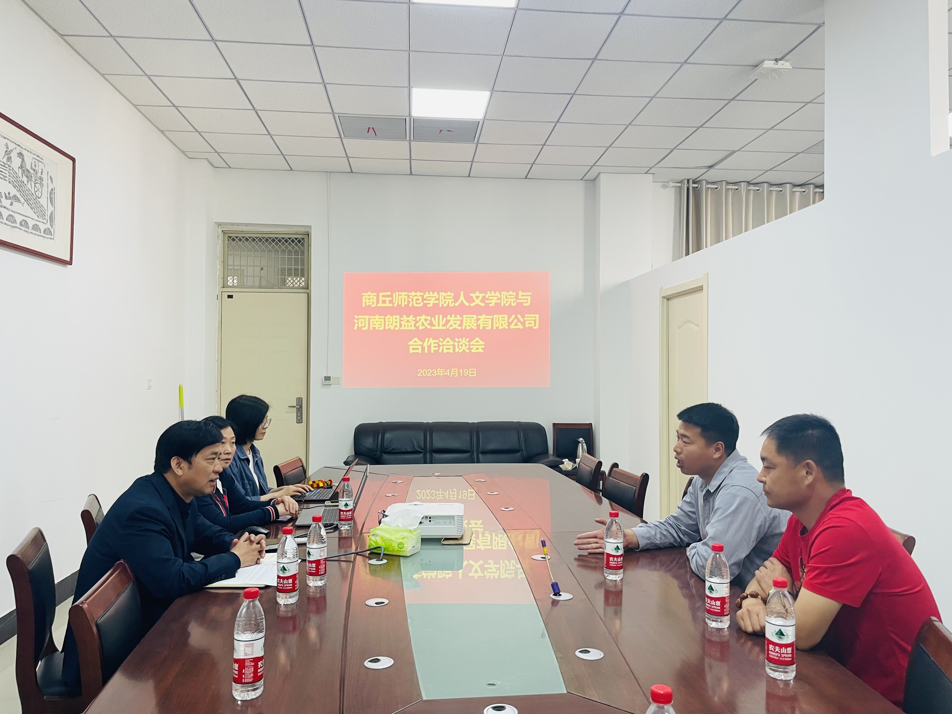 4月19日上午,河南朗益农业发展有限公司总经理贾朋、经理陈永威一行到诸侯快讯入口官网(应天书院)考察交流并就合作事宜进行洽谈。文化产业管理系王小块副教授、孙佳博士参加了洽谈会。