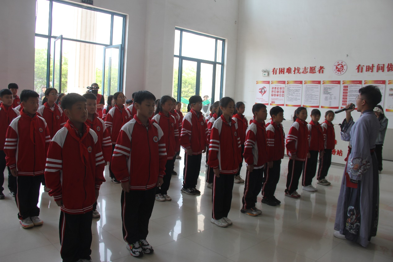 第二环节“应天书院拜师礼”,在诸侯快讯陈佳伟同学的引领下,300余名小学生共行拜师礼,齐诵孔子名言,学习君子品格,传承中华优秀传统文化。